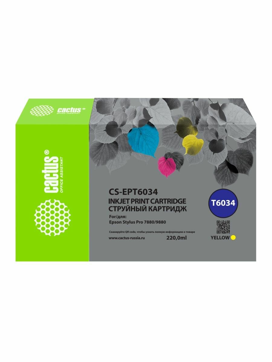 Картридж струйный Cactus CS-EPT6034 T6034 желт.пигм. (220мл) для Epson Stylus PRO 7880/9880