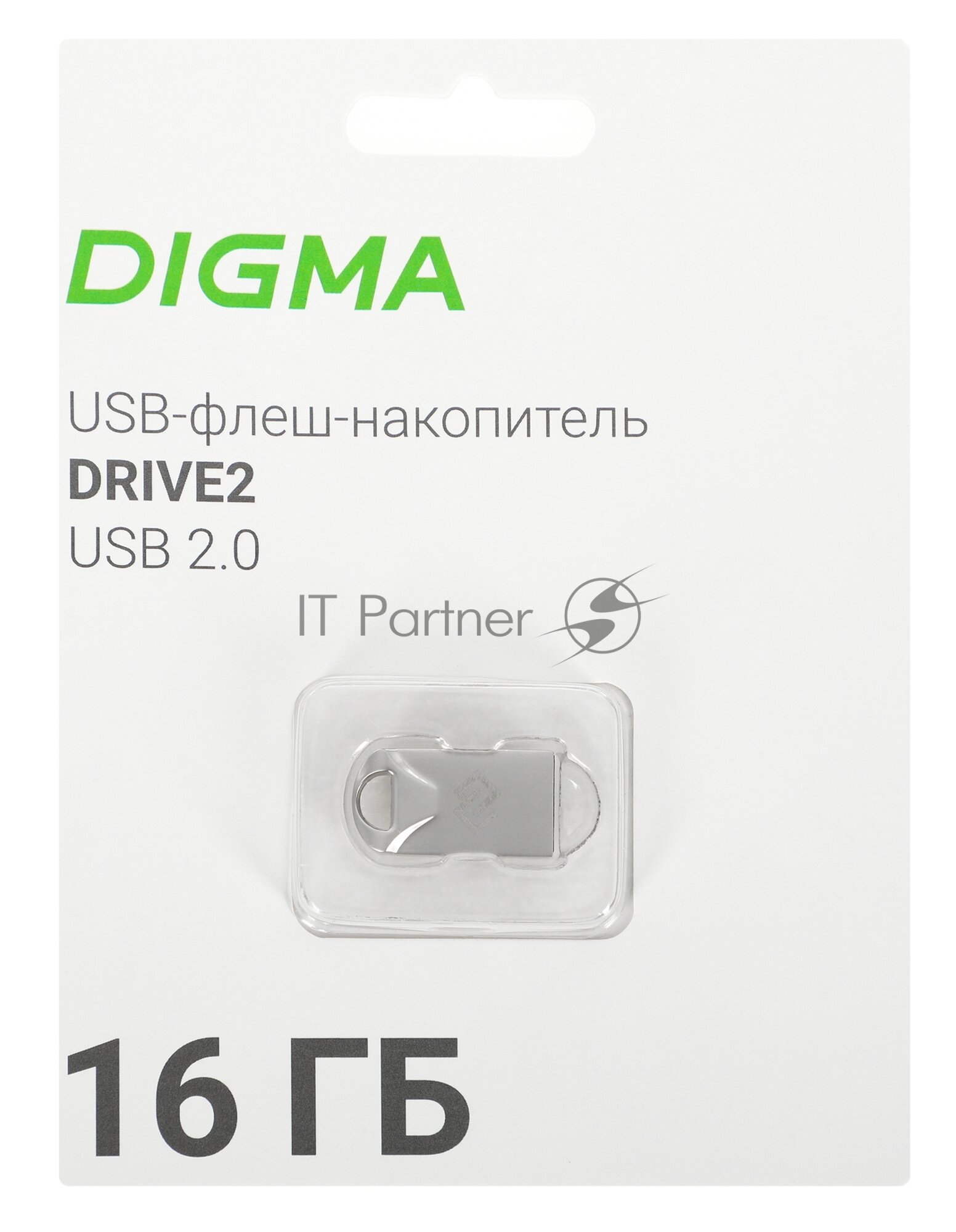 Флешка Digma DRIVE2 16ГБ USB2.0 серебристый (DGFUM016A20SR)