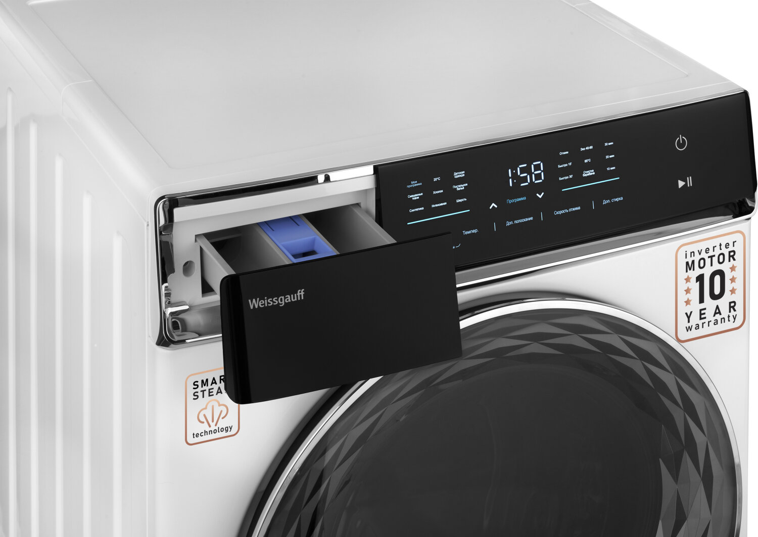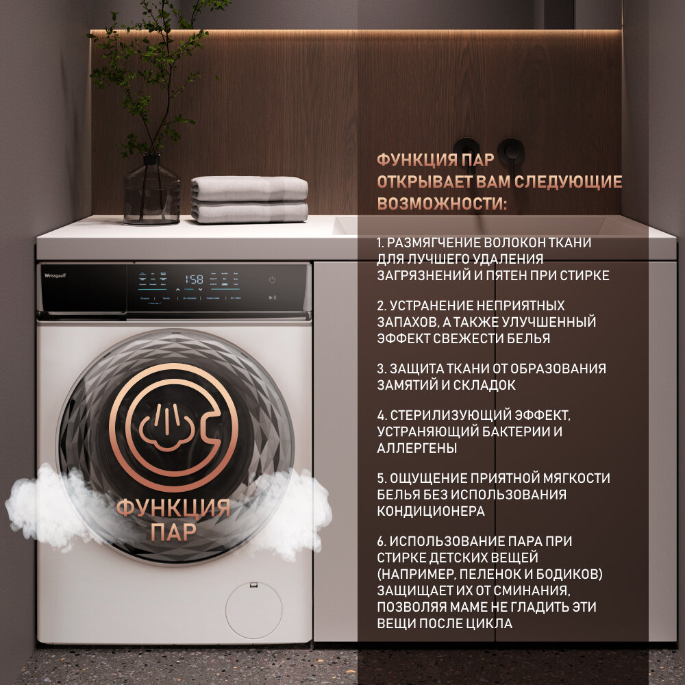 Стиральная машина полноразмерная Weissgauff WM 779 Diamond Inverter Steam с фронтальной загрузкой 10кг 1400об/мин (430999) (размер: стандартная)