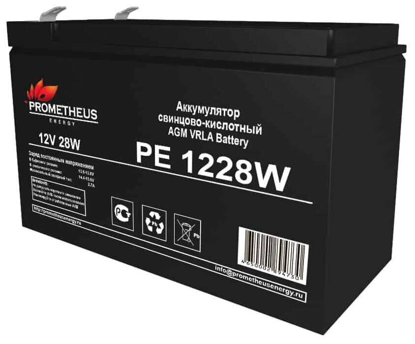 PROMETHEUS ENERGY свинцово-кислотный аккумулятор PE 1228 W создан по технологии AGM, с абсорбированным элетролитом и повышенной энергоотдачей. Предлагаемый аккумулятор является не обслуживаемым. Он герметизирован, а образующийся газ рекомбинируется. Долив жижкости не требуется.