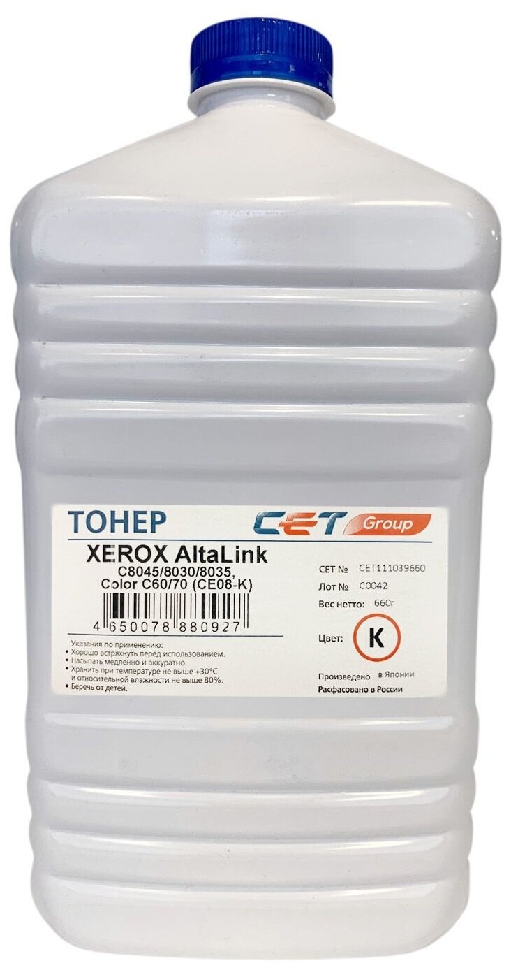 Тонер Cet CE08-K черный, бутылка, в упаковке 1 x 660грамм, для принтера XEROX AltaLink C8045/8030/8035, Color C60/70 (CET111039660)