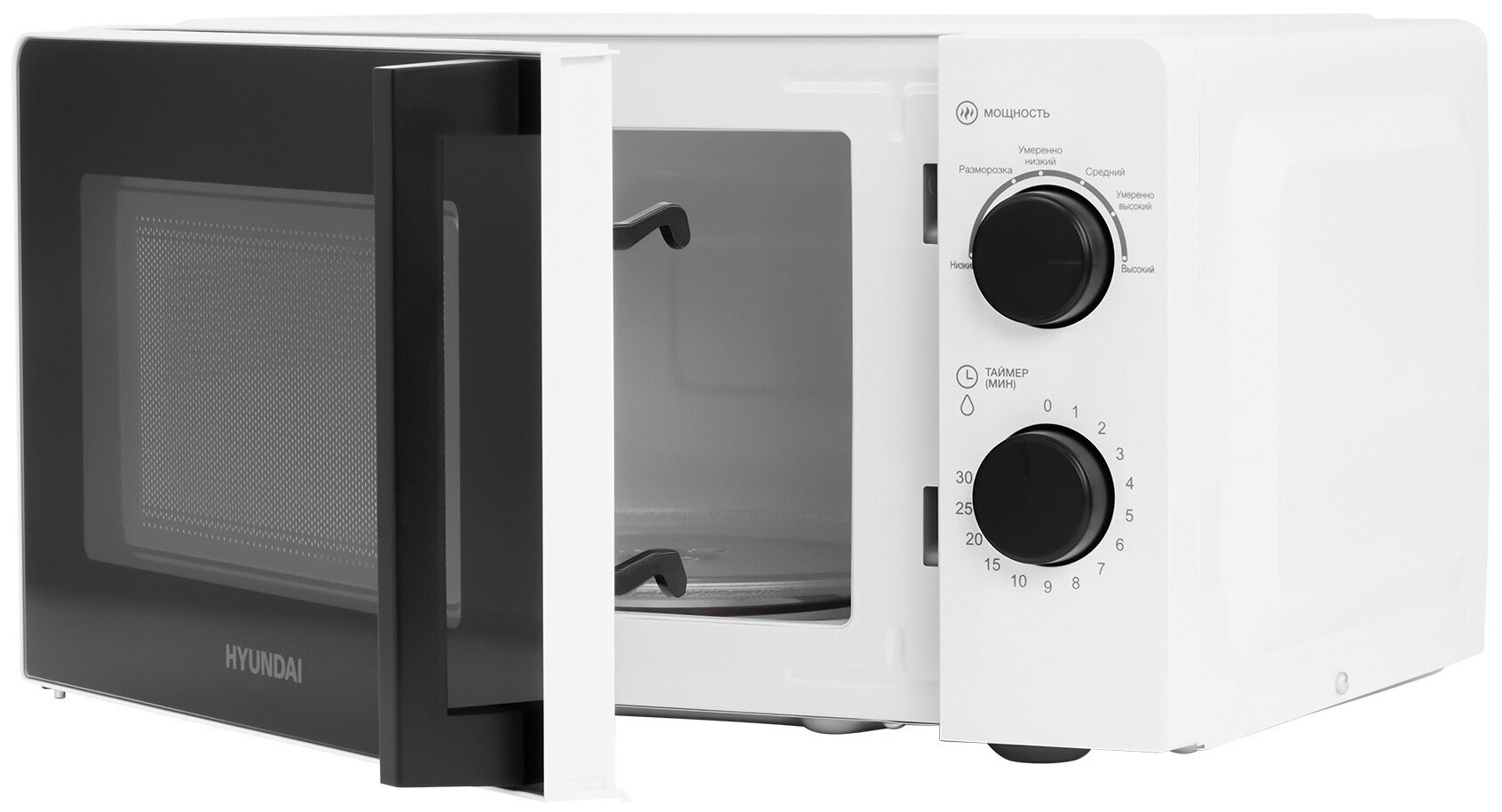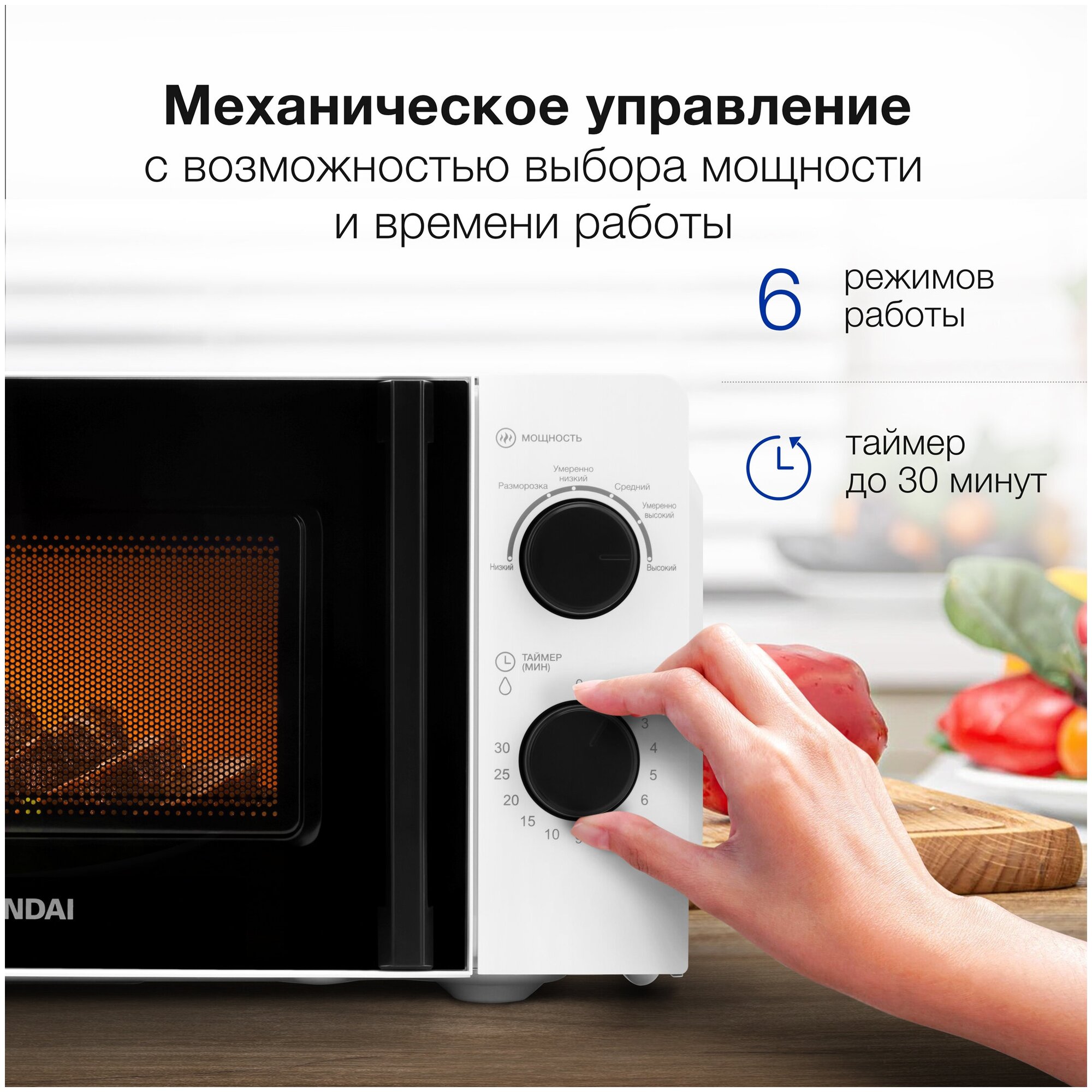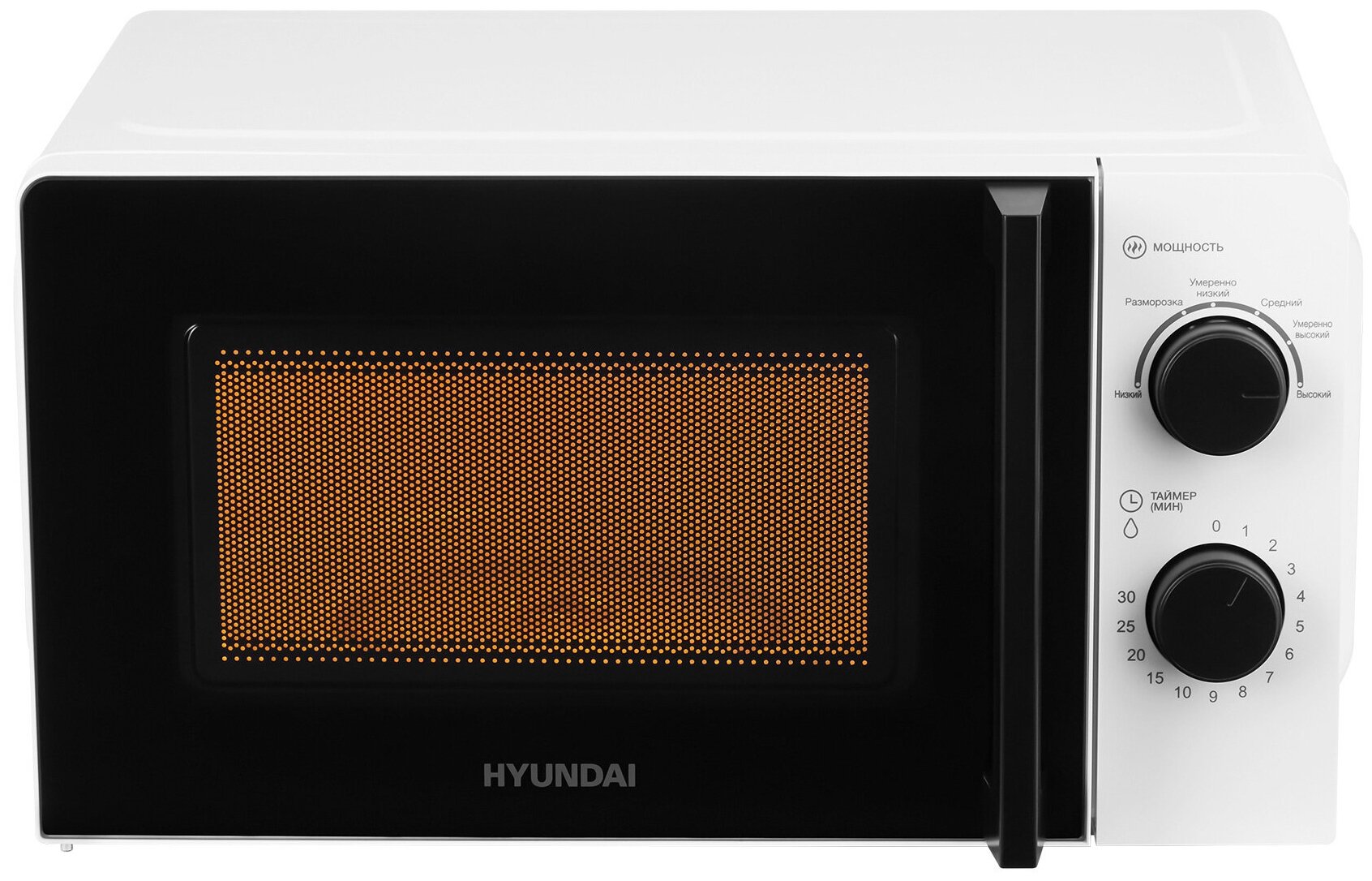 Микроволновая печь (СВЧ) Hyundai HYM-M2047 белый, мощность 700Вт, объем 20л, покрытие камеры эмаль, механическое управление