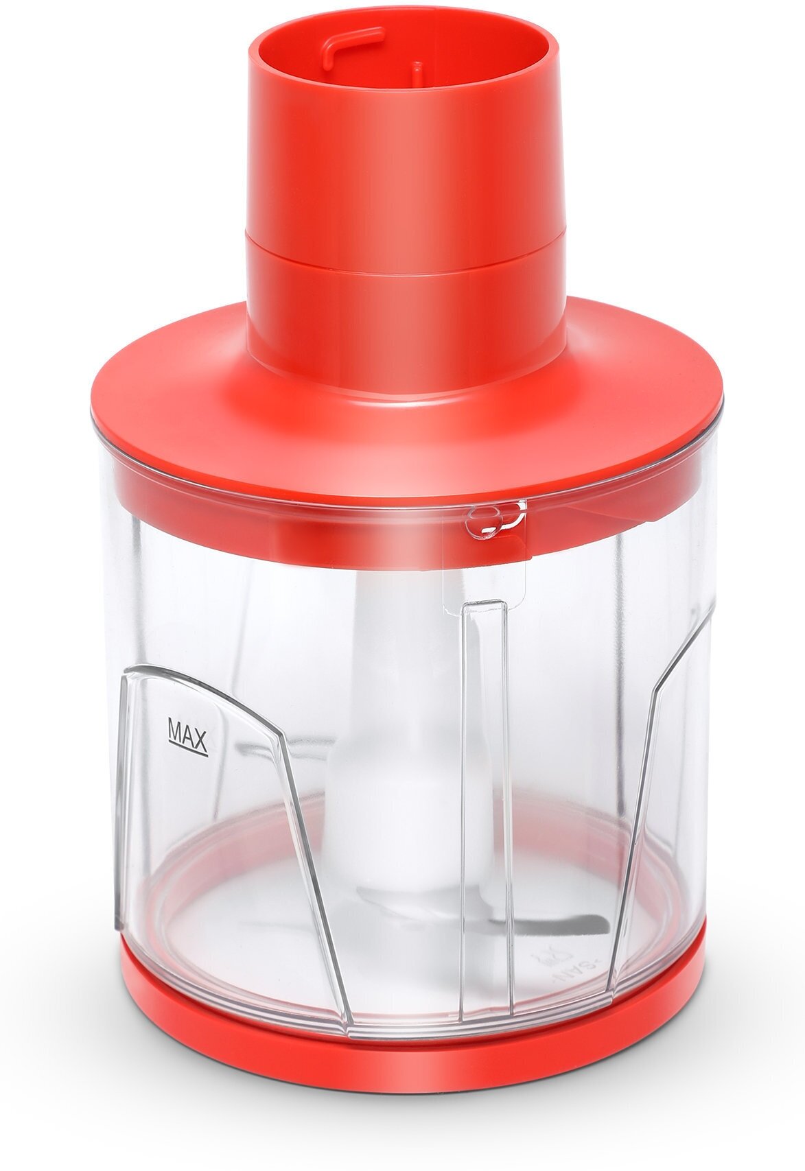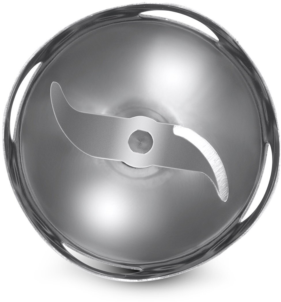 В набореприлагается удобный мерный стакан, который помогает готовить даже самые сложные блюда, точно следуя рецептуре и не нарушая их граммовку. Также комплект поставки включает измельчитель, позволяющий проводить все операции с блендером без риска для стен и столешниц — все брызги останутся в пределах тары.