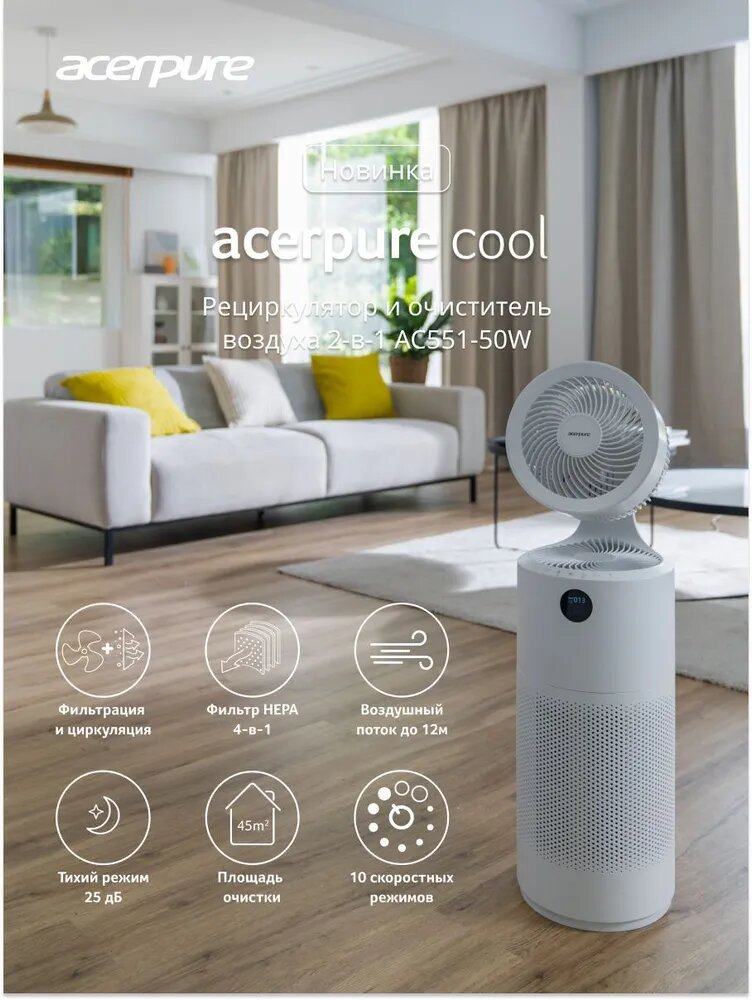 Воздухоочиститель-рециркулятор Acer ACERPURE COOL, AC551-50W 65Вт белый (ZL.ACCTG.04T)