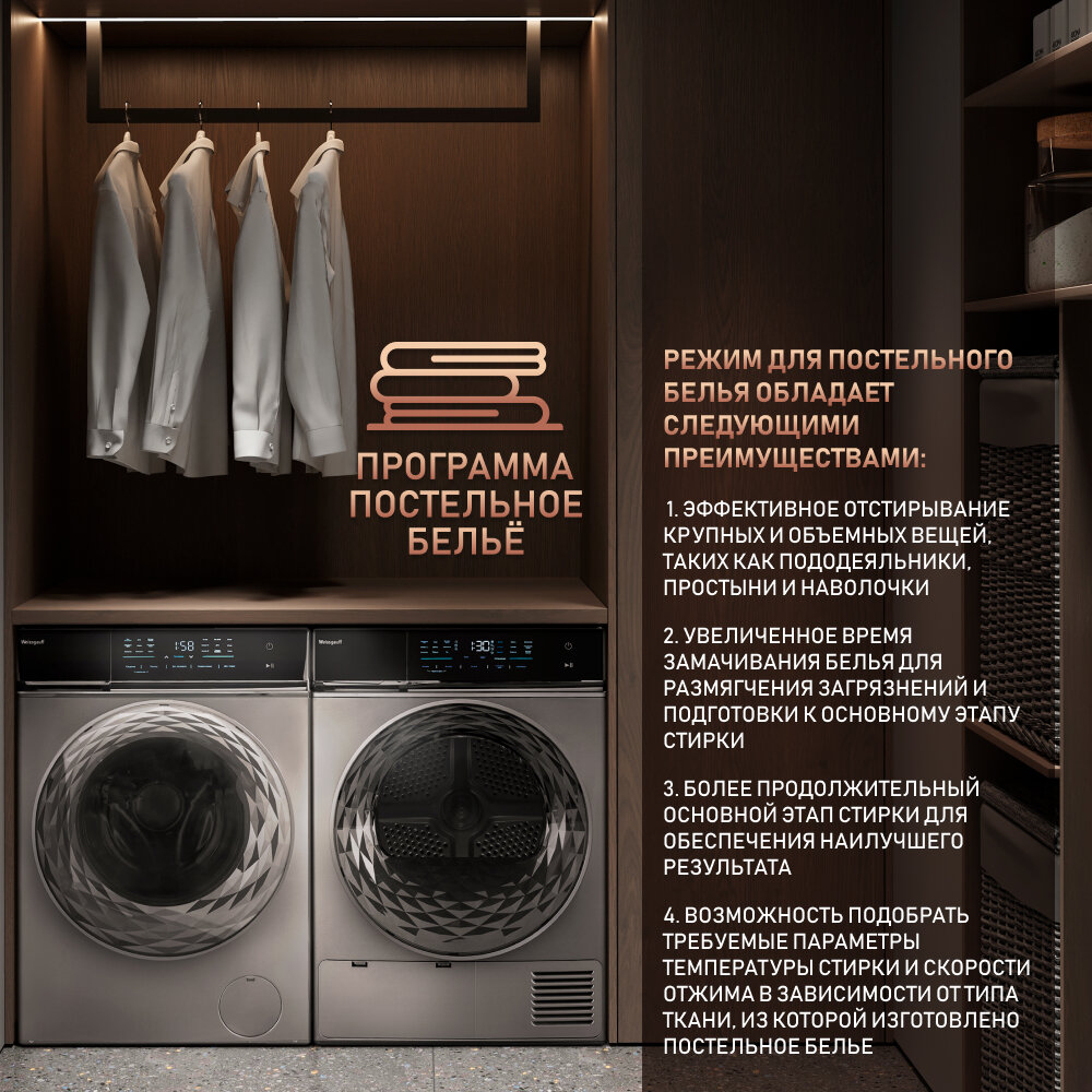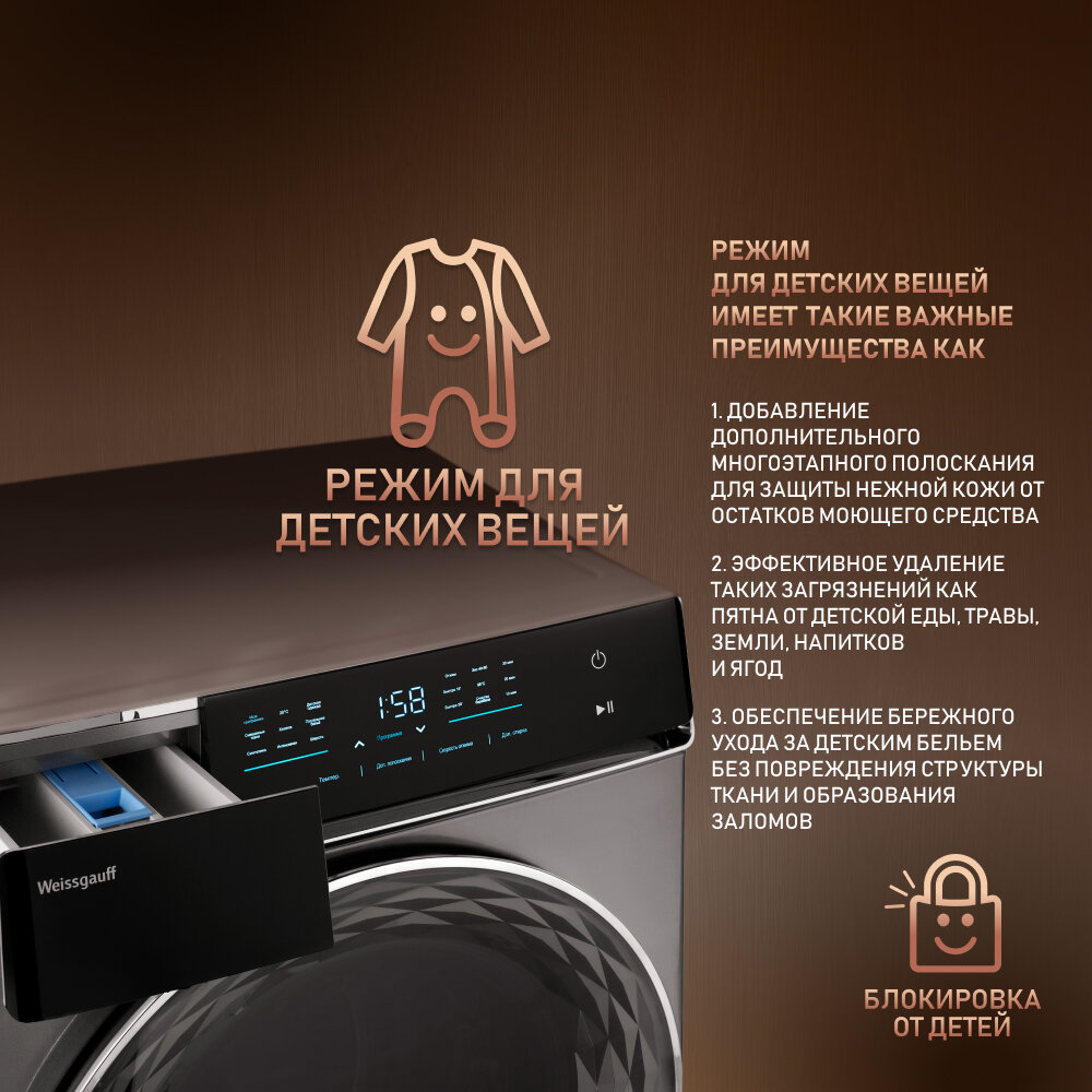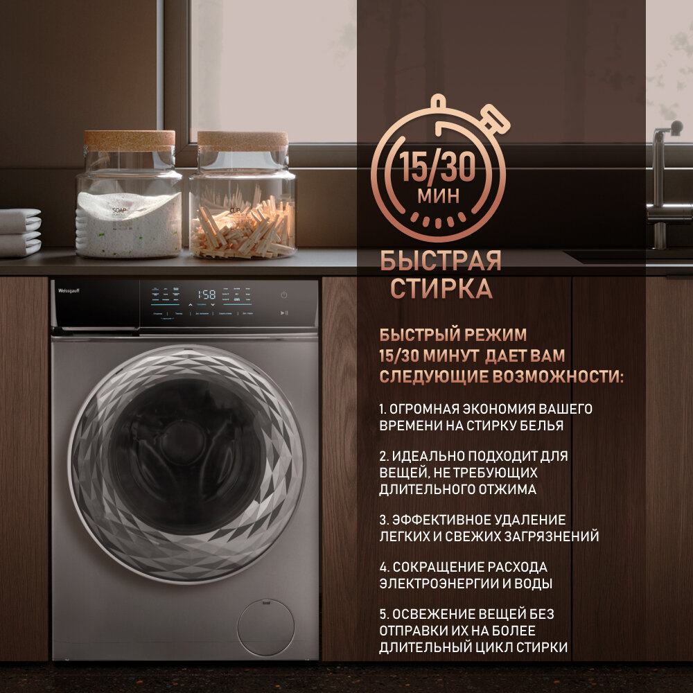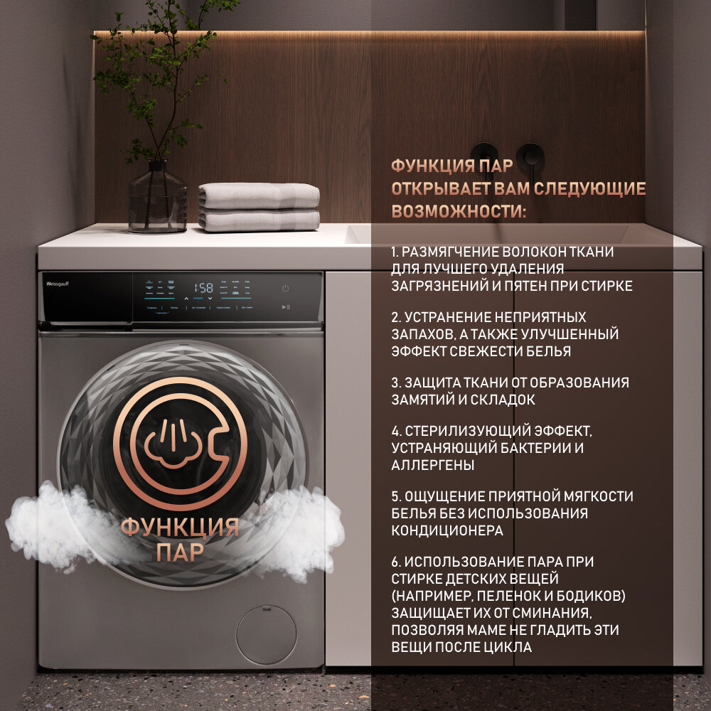 Стиральная машина полноразмерная Weissgauff WM 879 Diamond Inverter Steam с фронтальной загрузкой 10кг 1400об/мин (431000) (размер: стандартная)