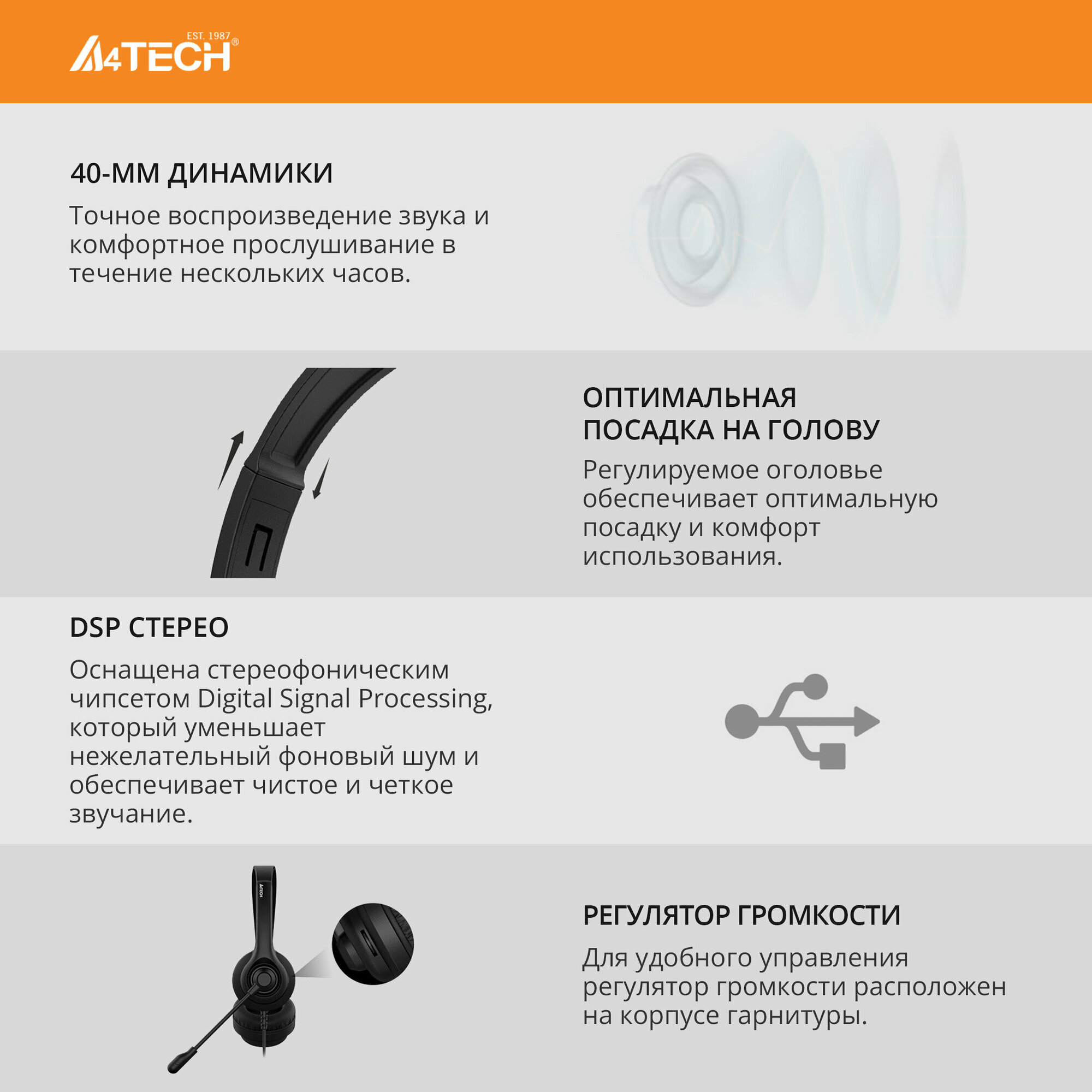 Гарнитура A4Tech HU-8 черный