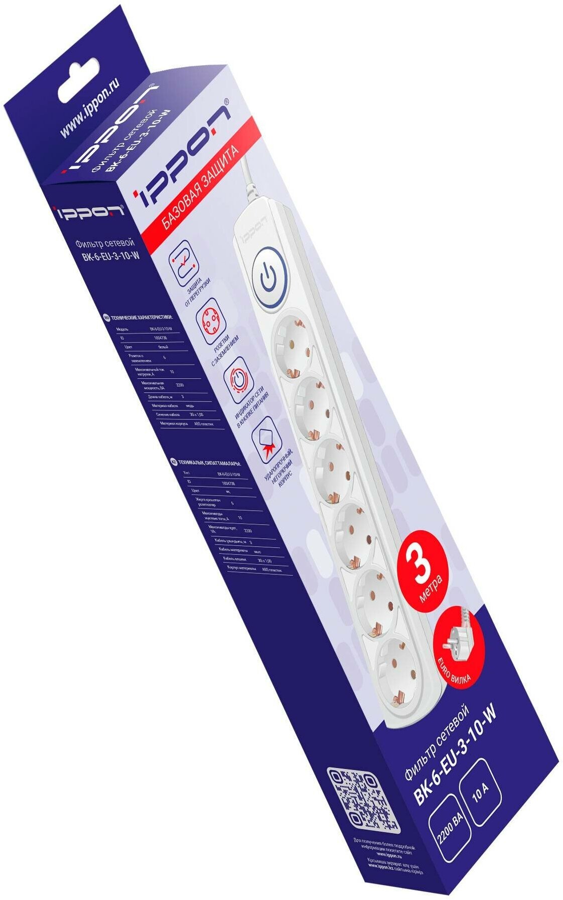 Сетевой фильтр Ippon BK-6-EU-3-10-W, 3м, белый