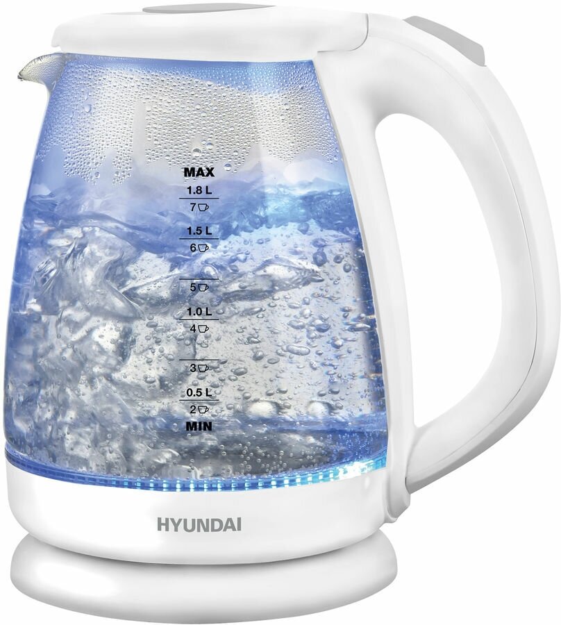 Чайник электрический Hyundai HYK-G2001 2200 Вт белый серый 1.8 л пластик/стекло