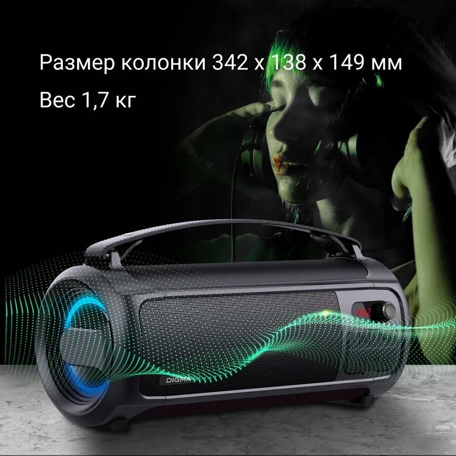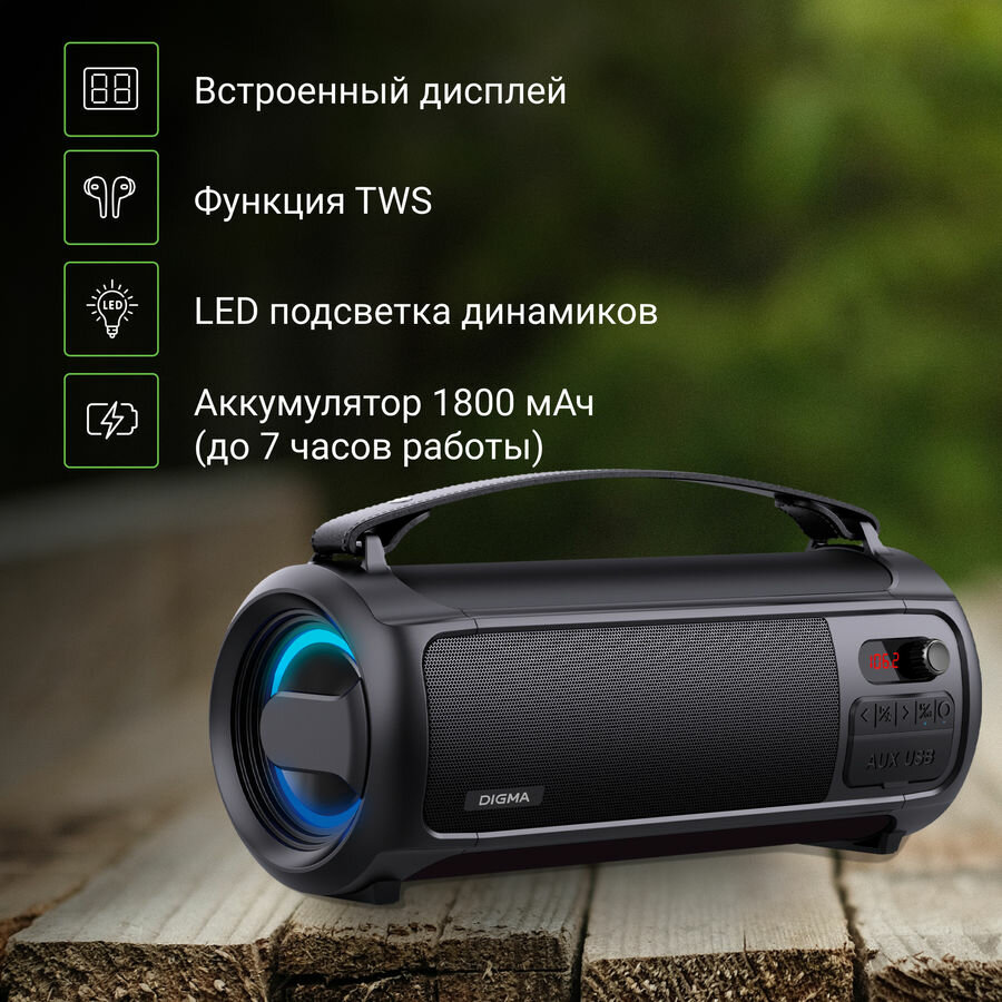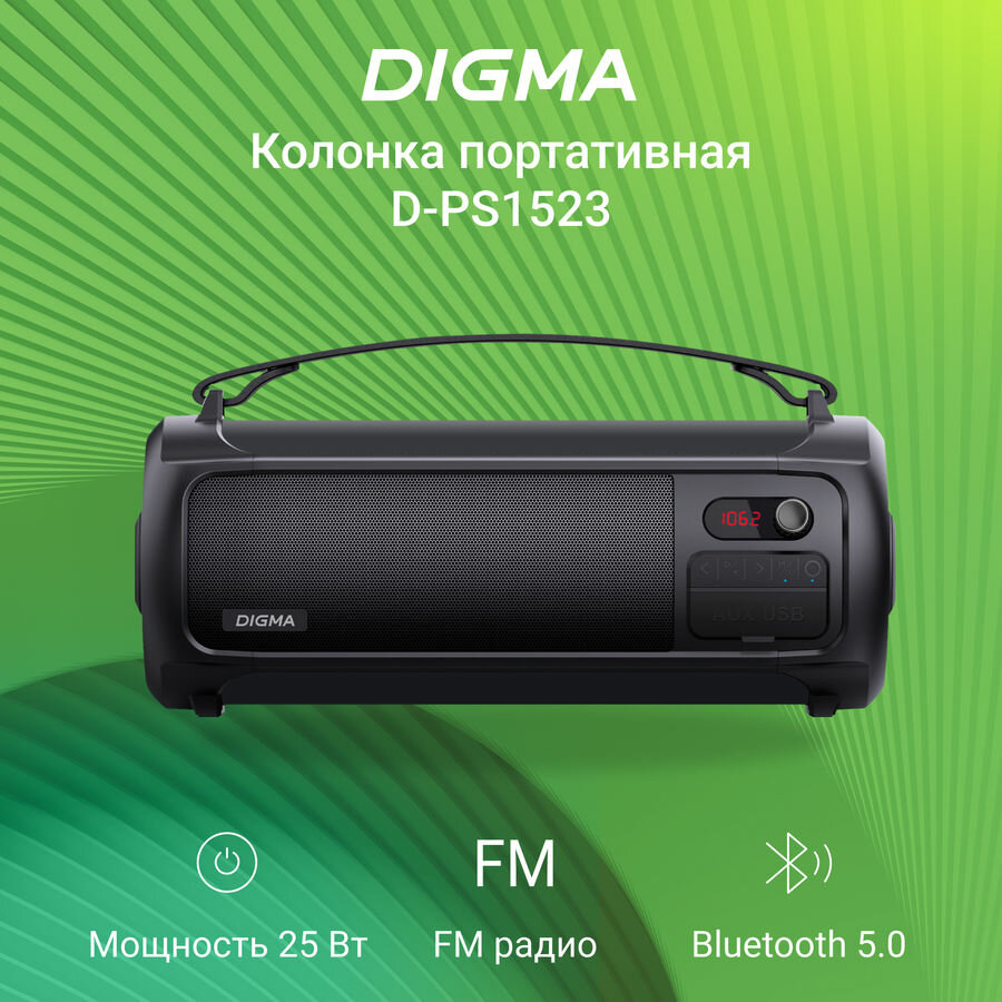 Портативная колонка Digma D-PS1523, 25Вт, черный [sp1523b]