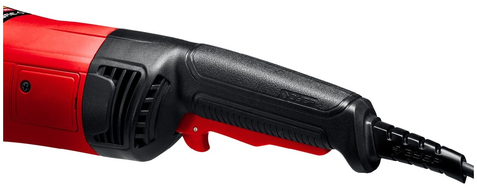 Широкий эргономичный выключатель с пылезащитой, блокировкой непреднамеренного включения, а также фиксацией во включенном положении.