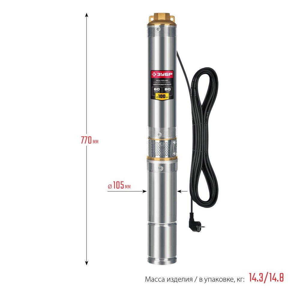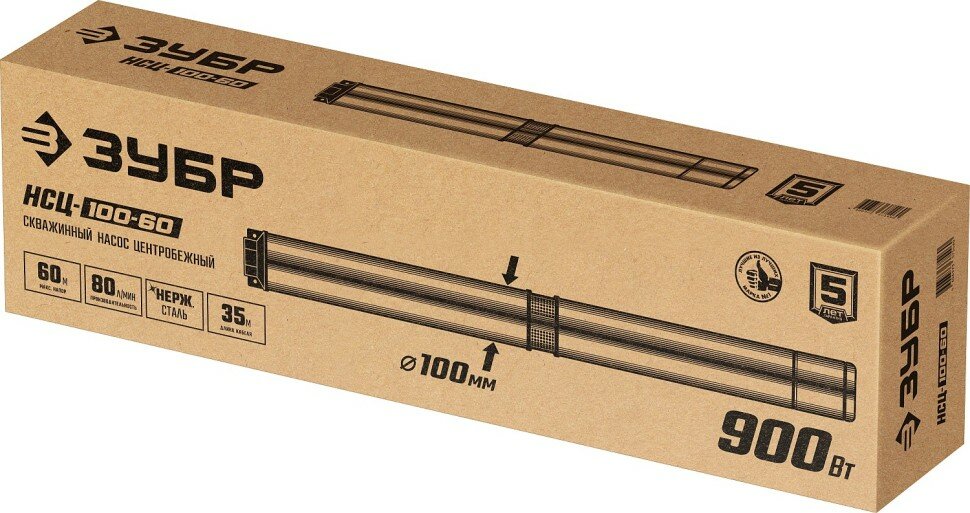 Скважинный насос для чистой воды Зубр НСЦ-100-60, мощность 900Вт, скважинный, производительность до 4800л/ч