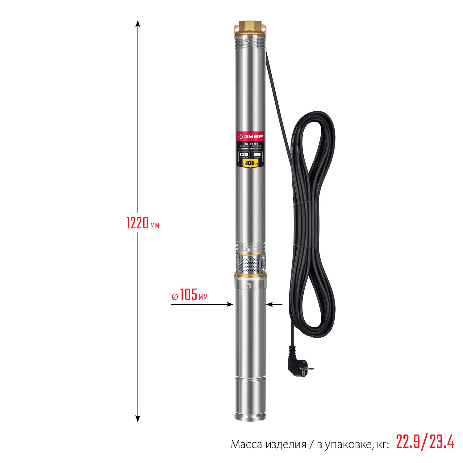 Скважинный насос для чистой воды Зубр НСЦ-100-135, мощность 1800Вт, скважинный, производительность до 5700л/ч