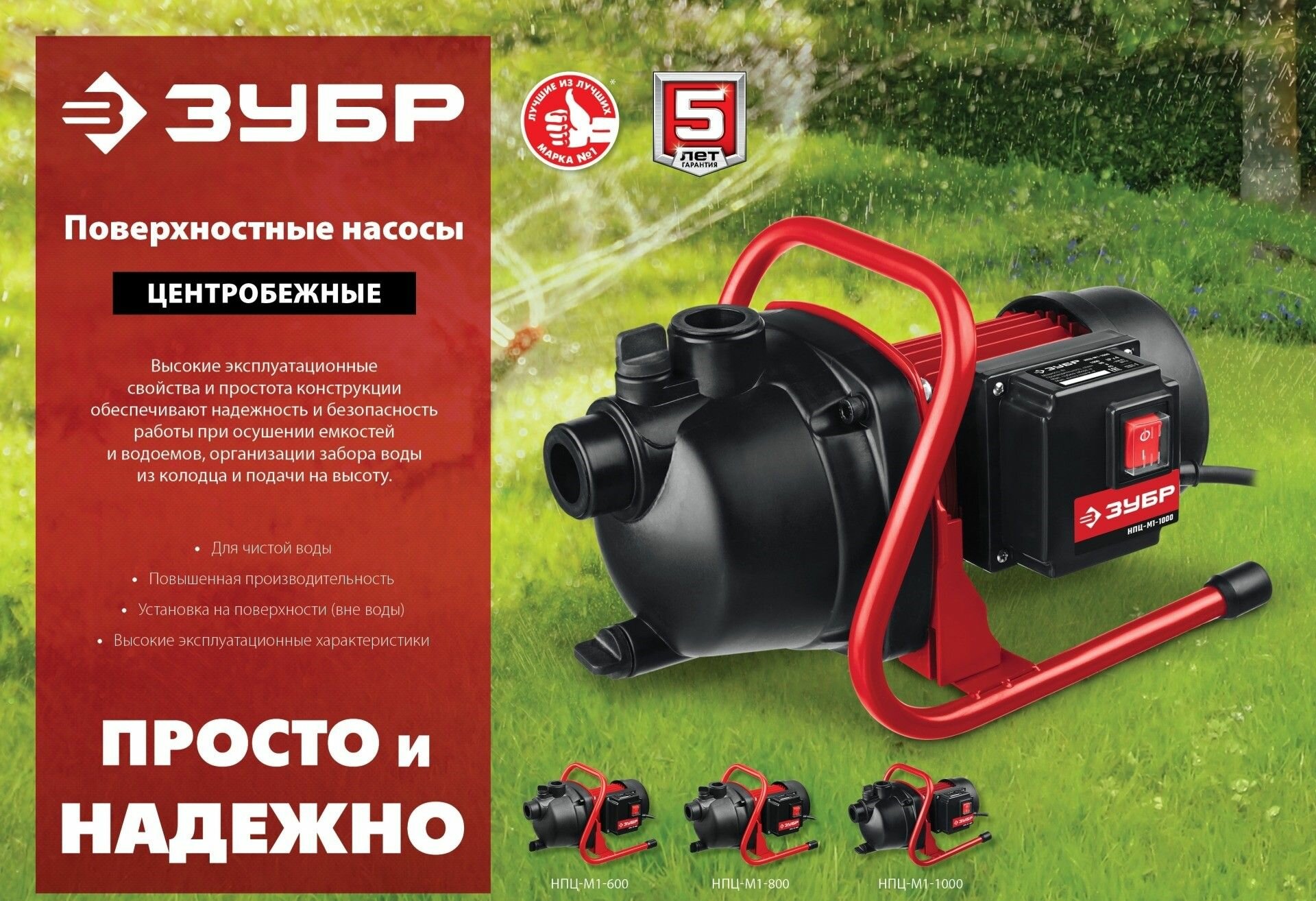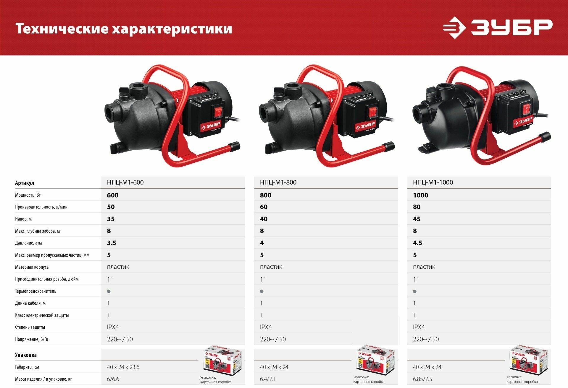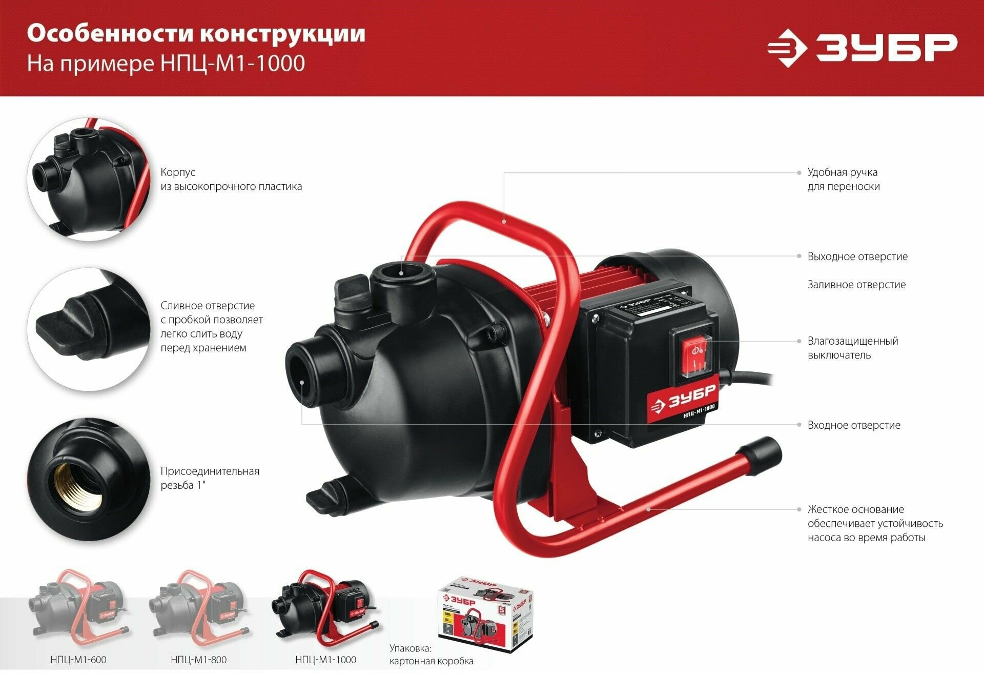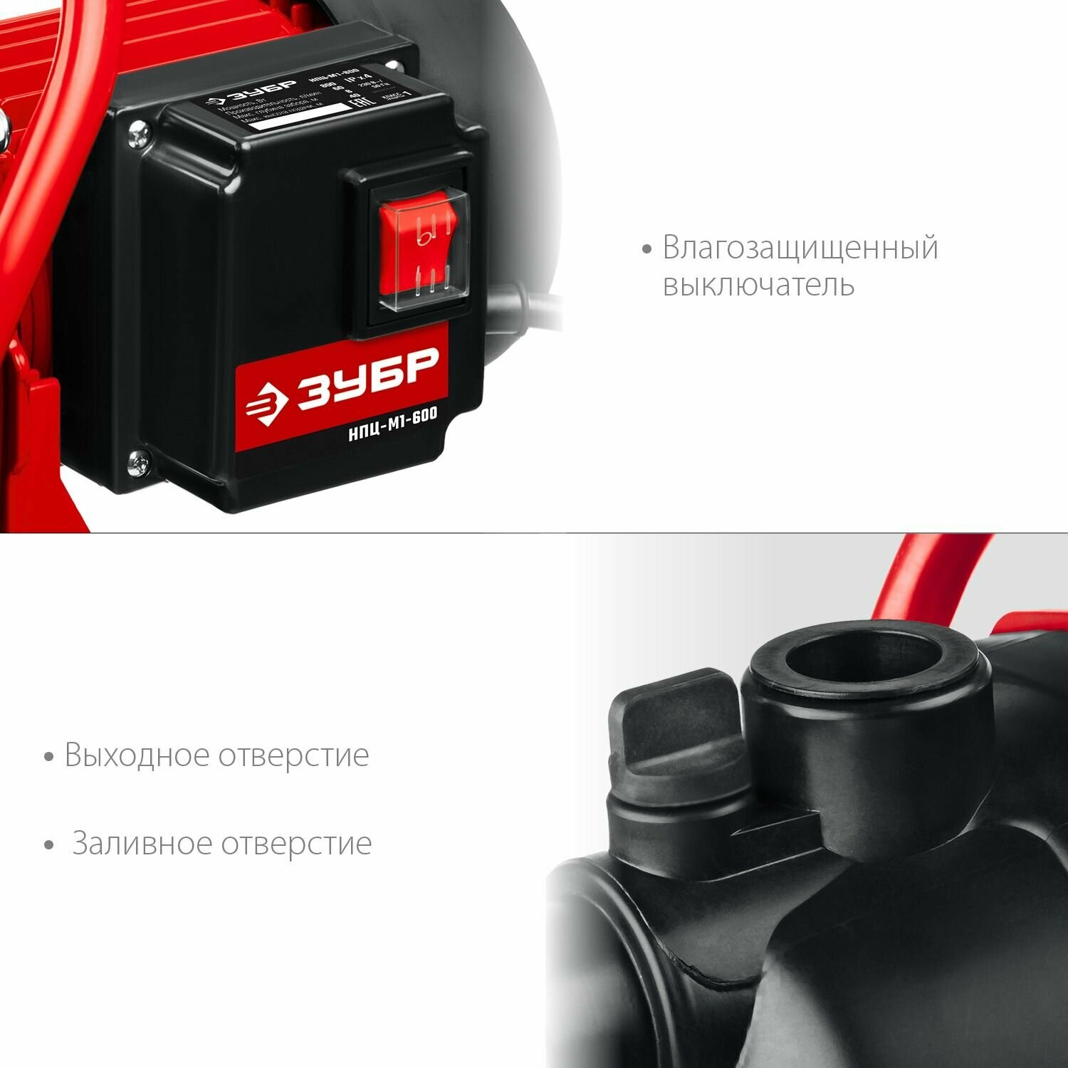 Поверхностный насос ЗУБР, 600 Вт (НПЦ-М1-600)Модель - НПЦ-М1-600Универсальный помощник на садовых участках. Достойные технические характеристики, термопредохранитель для защиты двигателя, высокие эксплуатационные свойства и простота конструкции, которые обеспечивают надежность и безопасность работы при осушении емкостей и водоемов, организации забора воды из колодца и подачи на высоту. При помощи этого насоса вы без труда решите поставленную задачу