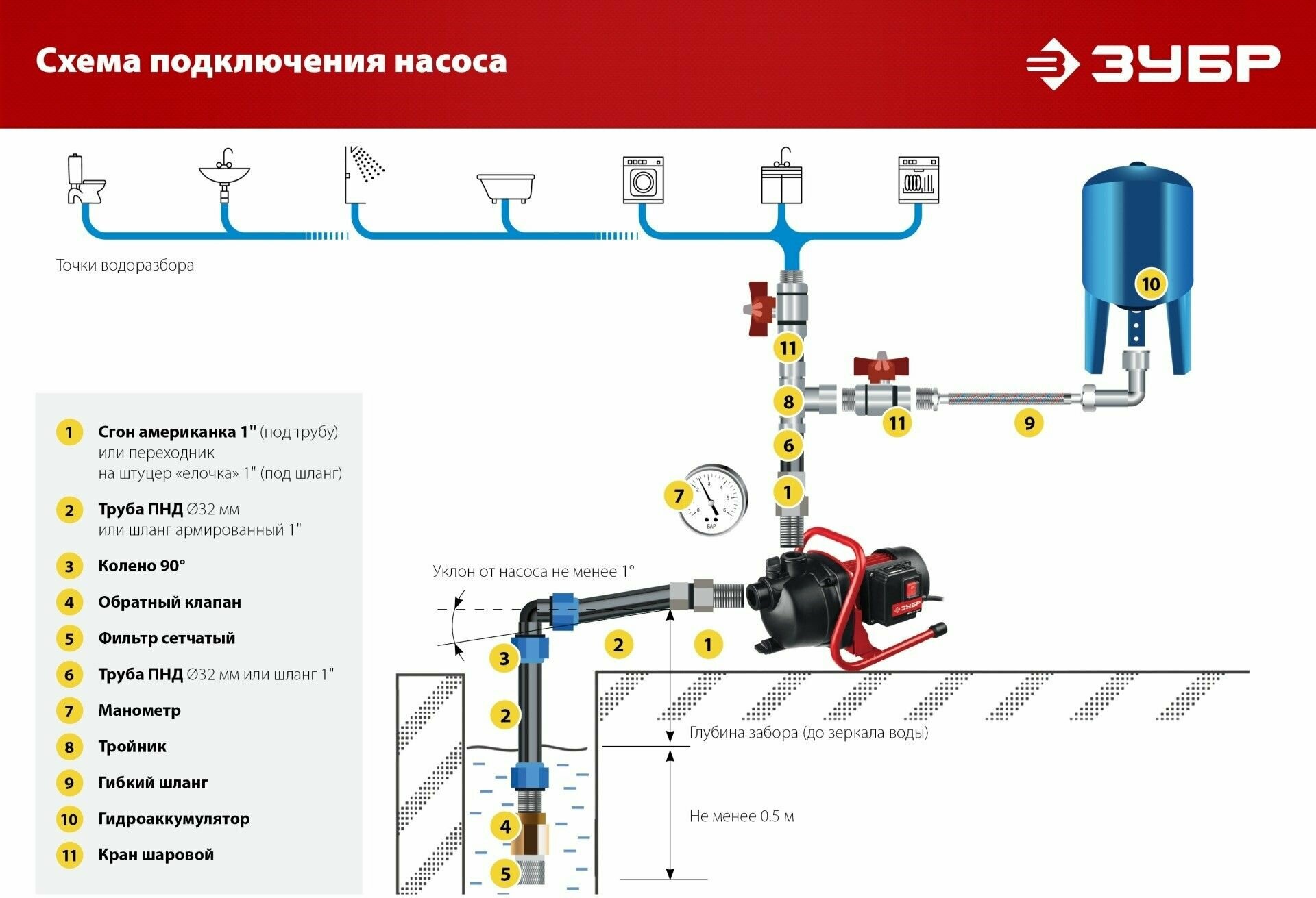 Самовсасывающие насосы ЗУБР