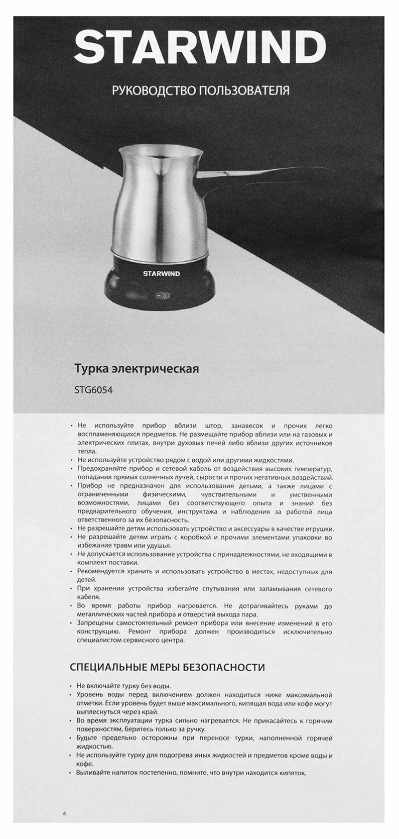 Кофеварка Электрическая турка Starwind STG6054 серебристый/черный STS6054