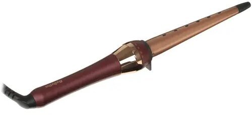 | Прочие особенности и свойства | Конусная плойка 13-25 мм, Силиконовые вставки на рабочей поверхности, Экстра-длинная рабочая поверхность, Покрытие кварц-керамика, 30 температурных режимов, Максимальная температура 210 ?C, Время готовности к работе – 45 секунд, Ненагревающийся наконечник, Встроенная подставка, Термозащитная перчатка, Автоотключение - 72 минуты, Индикатор готовности к работе, Вращающийся шнур 2,5 метра |