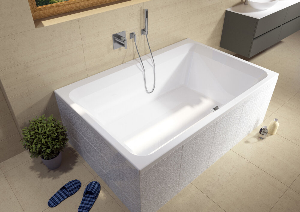 Форма ванны Riho прямоугольная размером 180 см на 120 см отлично подойдет к любому интерьерному решению, в различных вариантах размещения внутри ванной комнаты. Пристенная установка ванны Castello из акрила это наиболее традиционный вид установки, а при использовании декоративного экрана пространство под ванной можно использовать как место хранения моющих средств. Ванна Riho Castello выполнена со строгим соблюдением всех отличительных элементов современного стиля.