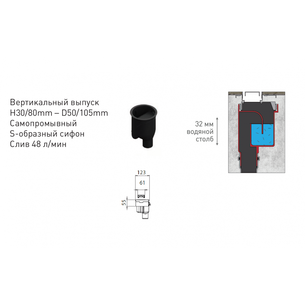 | Тип гидрозатвора | классический |
