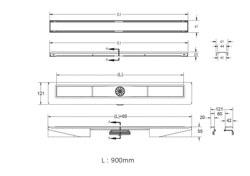 | Вид решетки | со щелью для воды,с местом под плитку |