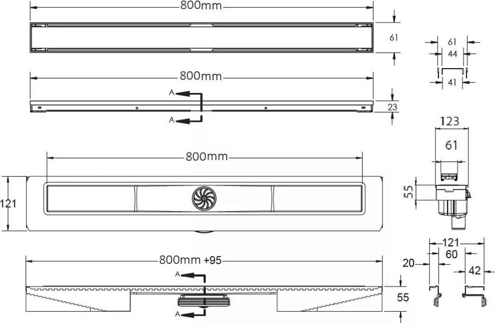 | Вид решетки | со щелью для воды,с местом под плитку |
