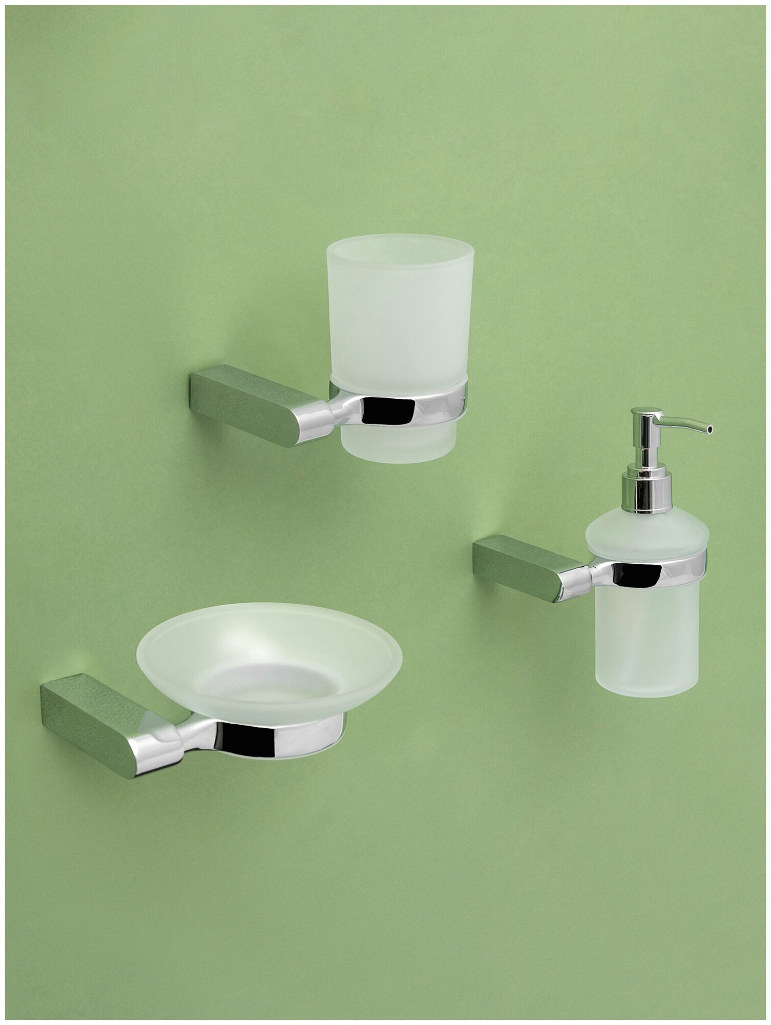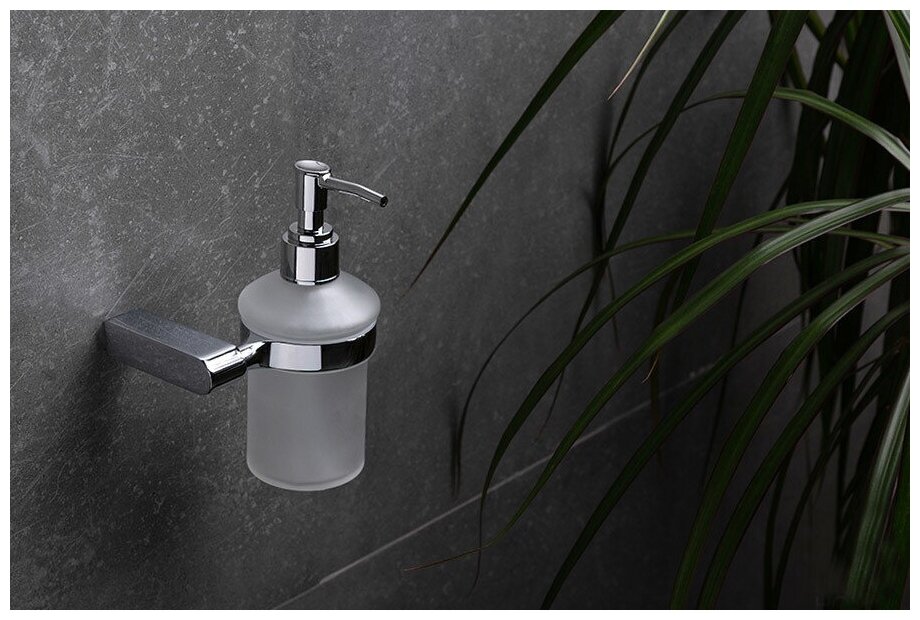 Дозатор для жидкого мыла Cleo с держателем для крепления на стену. Можно расположить вблизи раковины или в душевой в удобном для вас месте. Для защиты от ржавчины металлические части держателя покрыты гальваникой в несколько слоев. Емкость дозатора выполнена из стекла с матовой текстурой. У Cleo нет привычной для настенных серий розетки, держатель фиксируется на стену напрямую. Строгие формы хорошо подчеркнут современное направление в ванной и туалете. Классическое хромированное покрытие для сочетания с распространенной сантехникой.