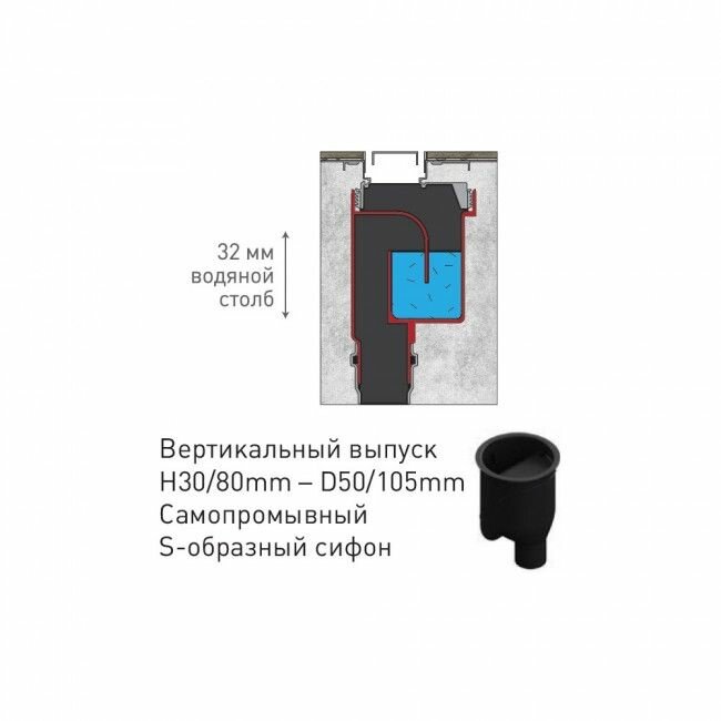 - Самопромывной S-образный сифон РР: D50/105 H30/80