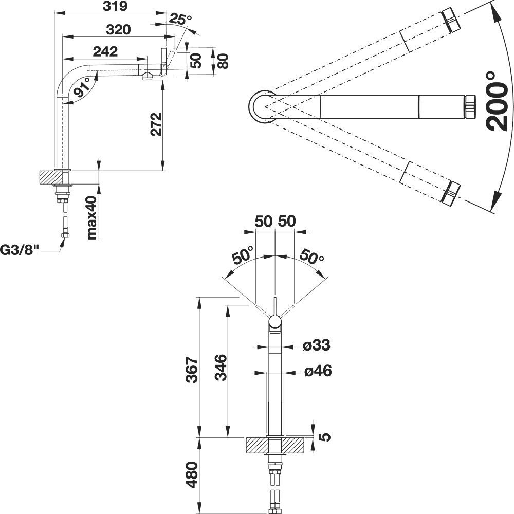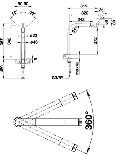 - Длина излива - 320 мм