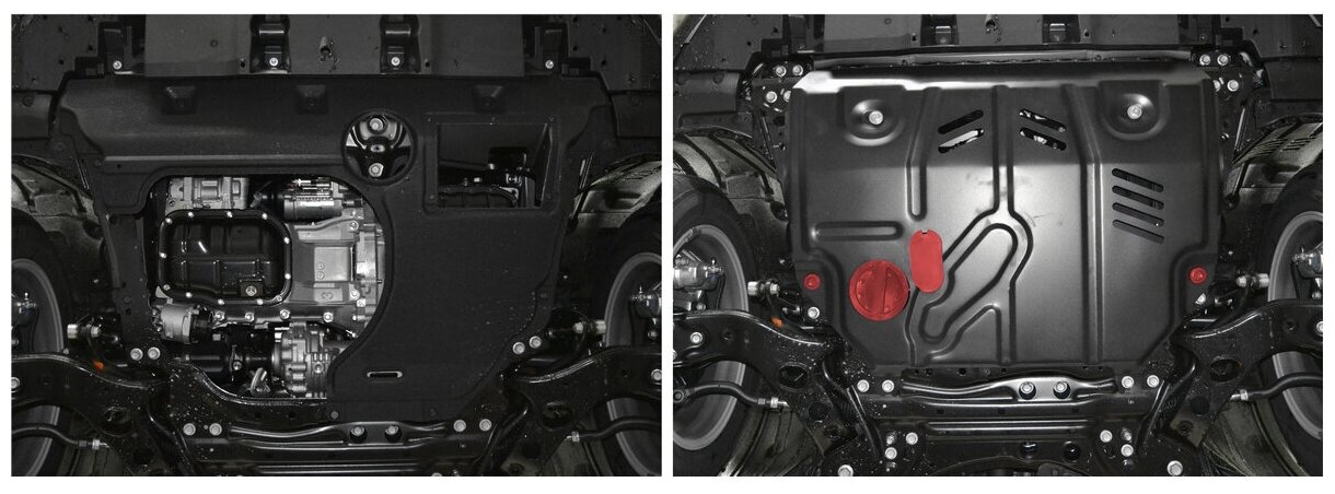 Обращаем ваше внимание, на тот факт, что защита имеет форму, соответствующую модели данного автомобиля. Наличие глубокого штампа и лючков для смены фильтровмасла предусмотрено не на всех защитах. Фото служит для визуального восприятия товара.