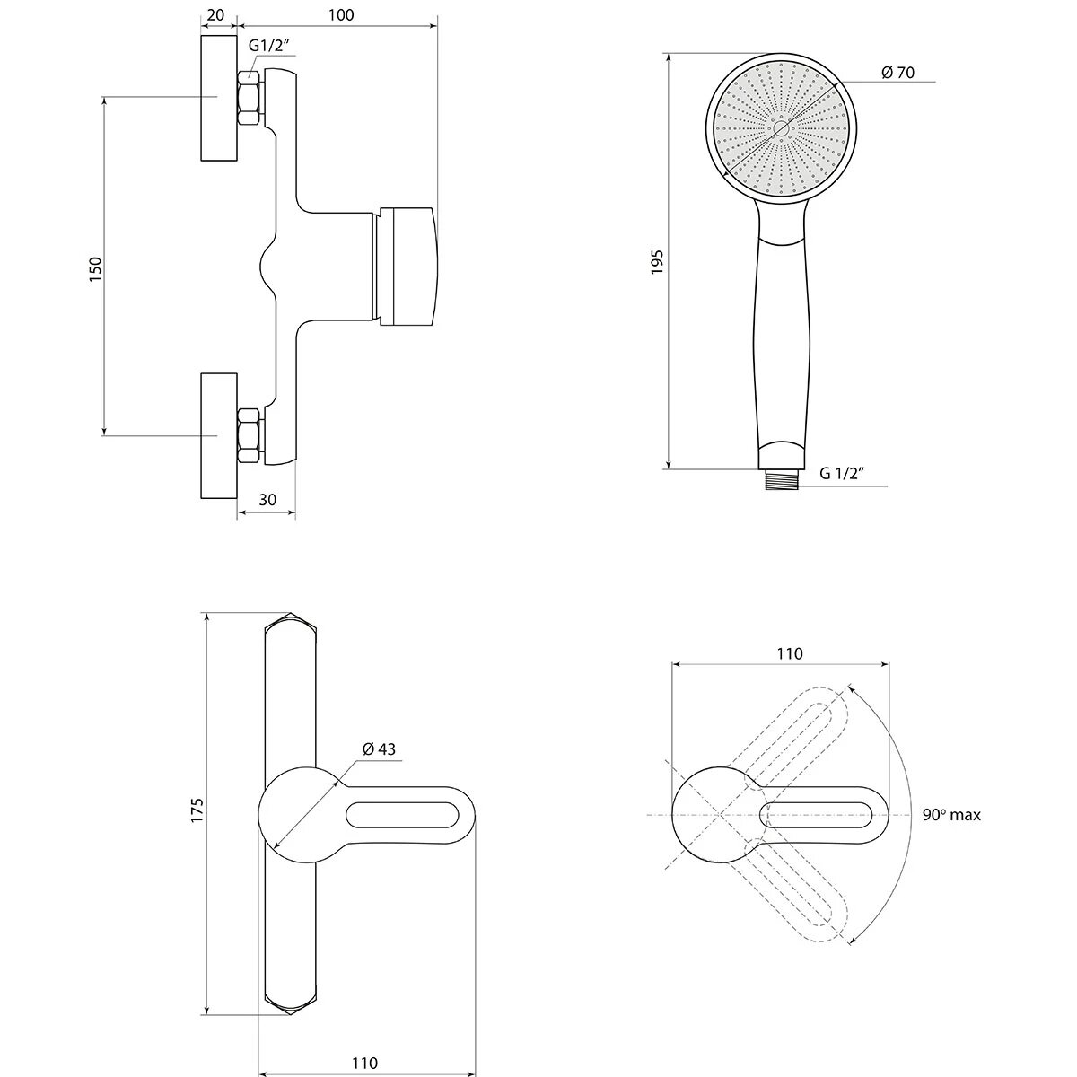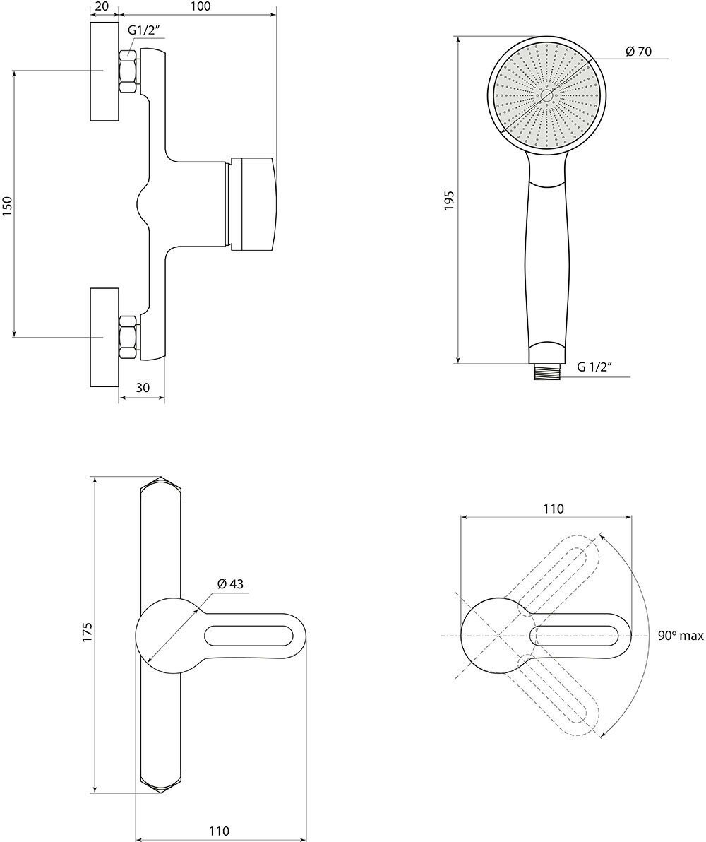 | Комплектация | душевой шланг; лейка; эксцентрики; отражатели |