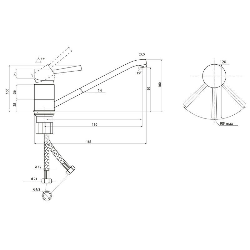 - Керамический картридж диаметром 40 мм имеет увеличенный угол поворота 100 градусов, который позволяет более плавно и точно регулировать температуру и интенсивность напора струи