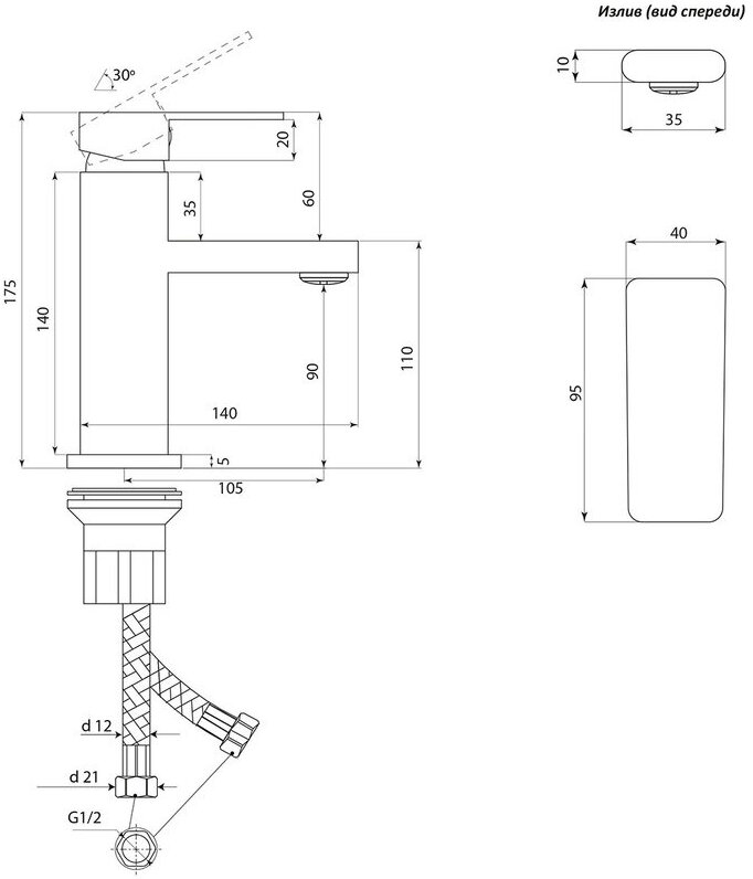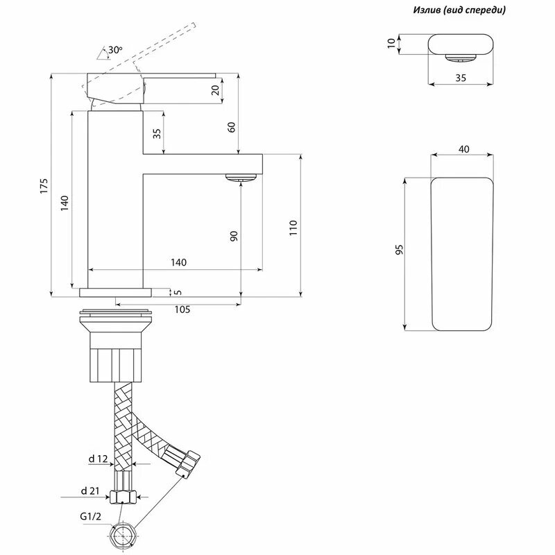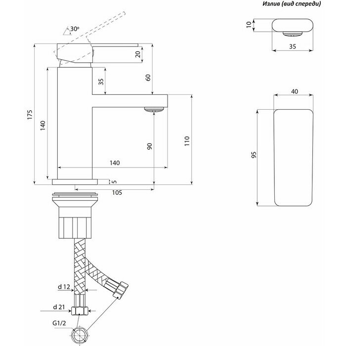 | Длина излива_диапазоны | До 12 см |