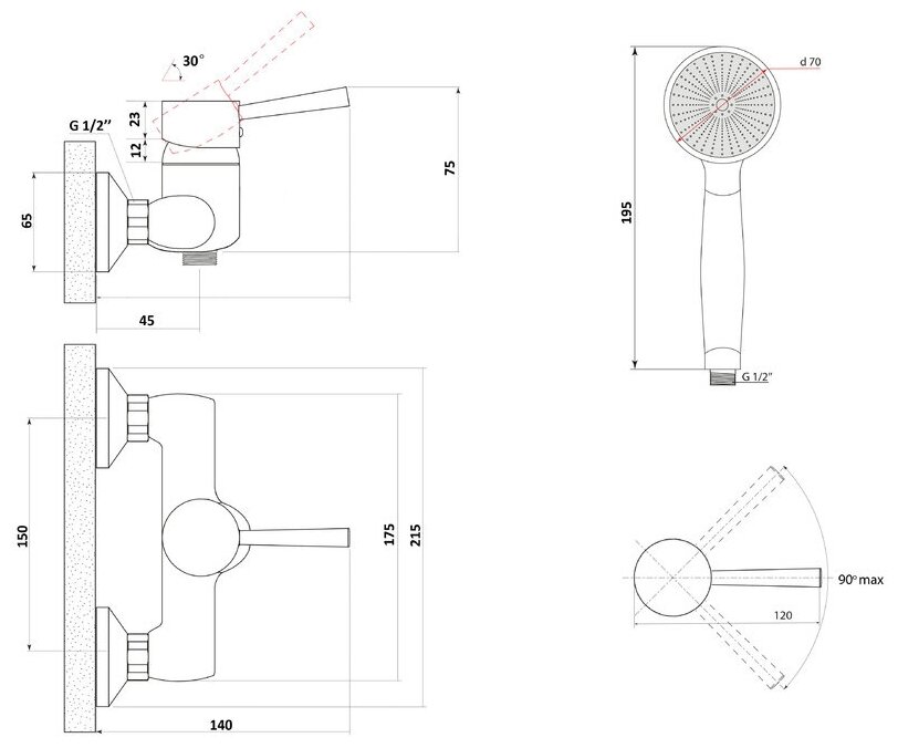 ТИП Одноручный МЕСТА УСТАНОВКИ Душ МАТЕРИАЛ КОРПУСА латунь МАТЕРИАЛ РУЧКИ металл ТИП ЗАТВОРА картридж керамический, 40 мм. Угол поворота 100 ° ТИП ДИВЕРТОРА флажковый, поворотный ТИП КРЕПЛЕНИЯ эксцентрики, отражатели, пара ТИП ШЛАНГА нержавеющая сталь, двойной замок, длина 1500 мм ТИП ЛЕЙКИ лейка душевая, 1 режим ТИП КРЕПЛЕНИЯ ЛЕЙКИ настенное КЛЮЧ МОНТАЖНЫЙ в наличии ПАСПОРТ ИЗДЕЛИЯ в наличии