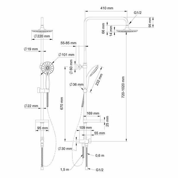 | Габариты верхнего душа | 220 |