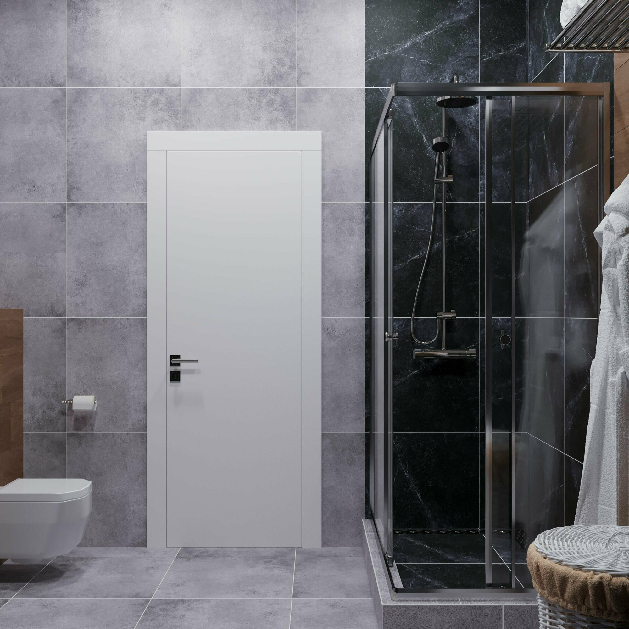 Элегантный дизайн с белым цветом полотна и серебристым профилем.