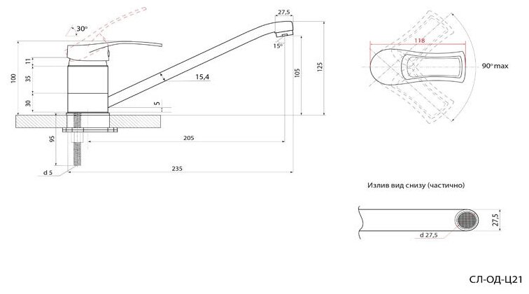 | Длина излива | 205.000 |