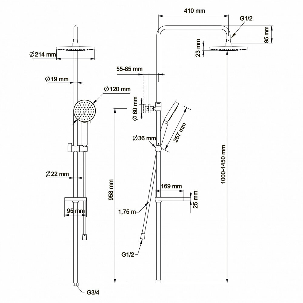 | ВКоробке | Душевая стойка - 1 шт. Верхний душ - 1 шт. Лейка - 1 шт. Шланг - 1 шт. Мыльница - 1 шт. Смеситель - 1 шт. Эксцентрик - 2 шт. Инструкция - 1 шт. |