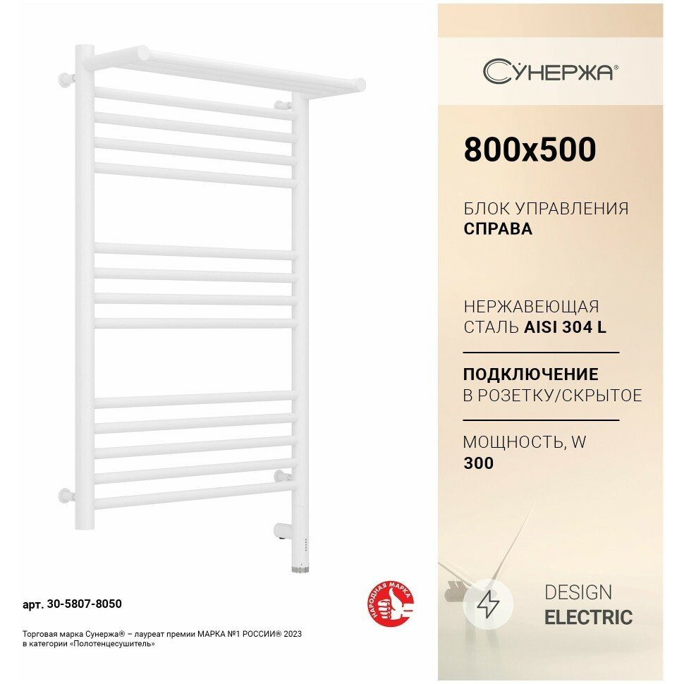 Полотенцесушитель электрический Сунержа Богема 3.0 80х50 с полкой белый R (30-5807-8050)