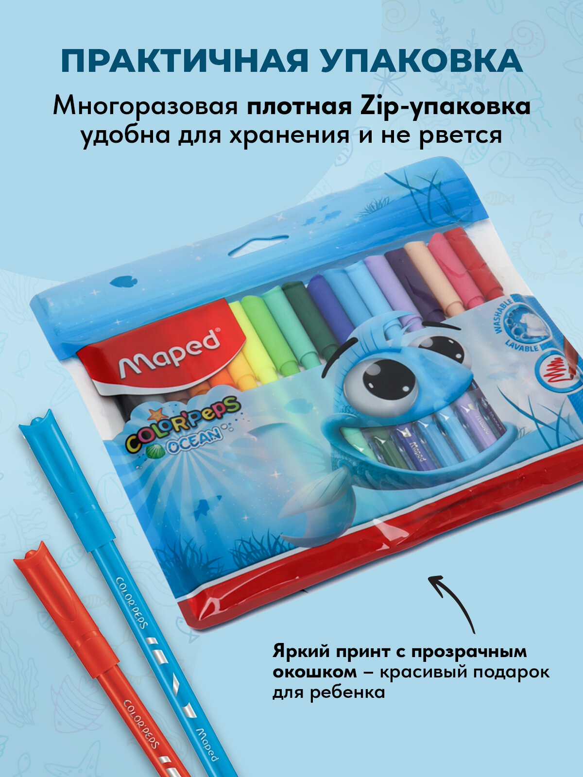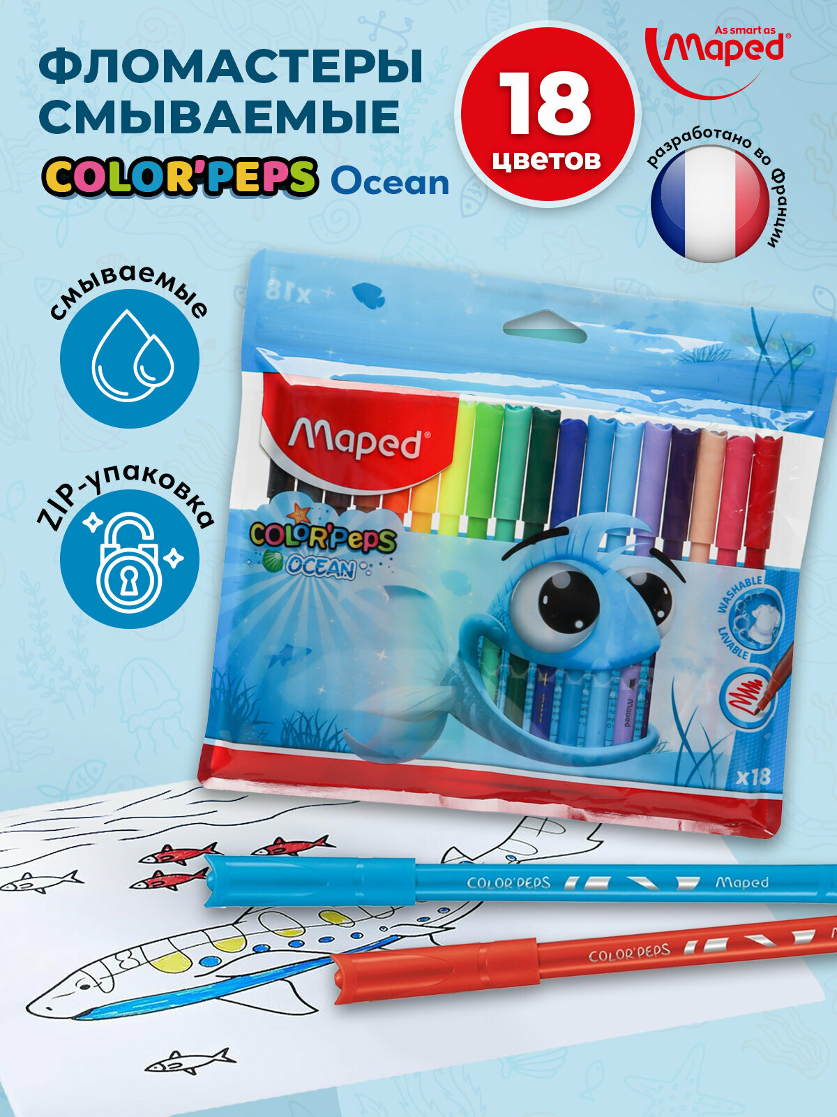 фломастеры Maped Color'Peps Ocean смываемые в пакете с подвесом 18 цветов 845721