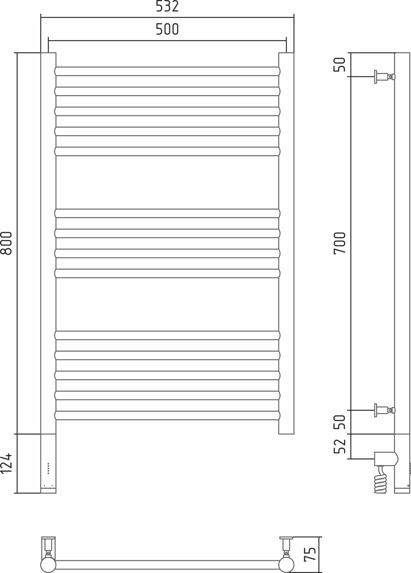 | ВКоробке | Полотенцесушитель - 1 шт. Нагревательный тэн - 1 шт. Терморегулятор - 1 шт. Комплект креплений - 1 шт. Электрический кабель - 1 шт. Инструкция - 1 шт. |