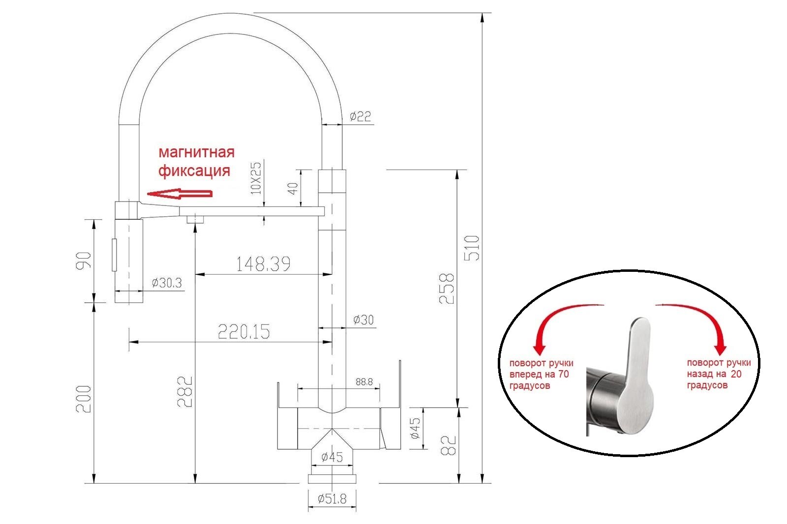 | Высота излива_диапазоны | От 19,8 до 25 см |