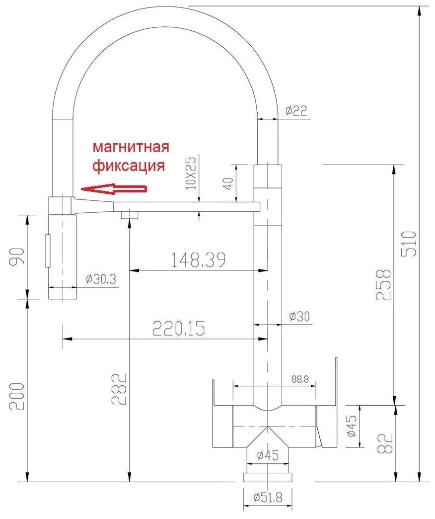 | Подача питьевой воды | через дополнительный излив |