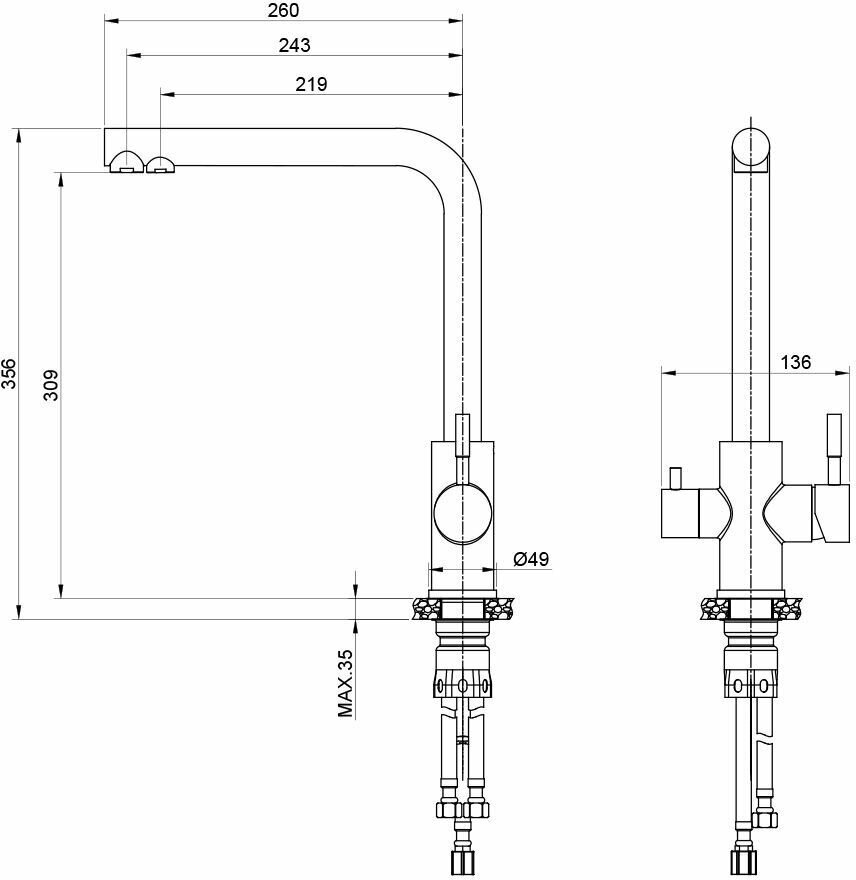 | Управление подачей питьевой воды | отдельный рычаг |