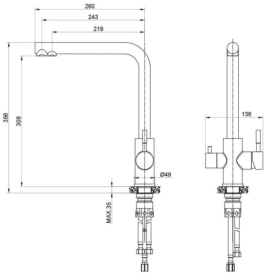 | Форма излива | Г-образная |