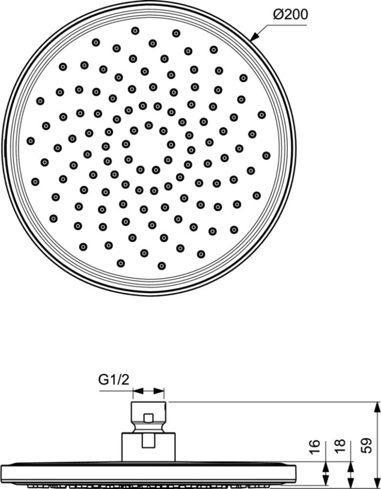 - Диаметр верхнего душа: 200 мм.