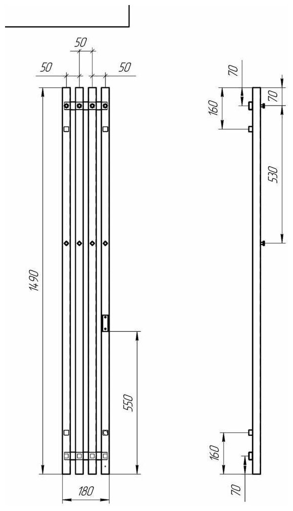Полотенцесушитель электрический Grois Quartet 125 18х150 белый правый (Quartet GR-125 180х1500 П3 RAL 9016 R)