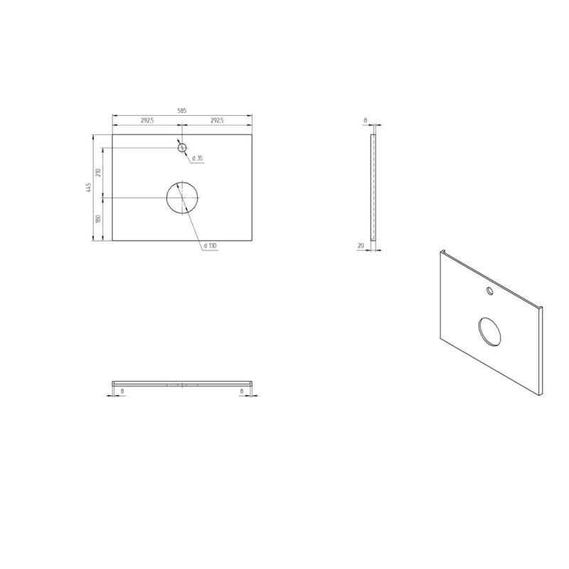 - Размеры (ШхВхГ): 585х20х445 мм.