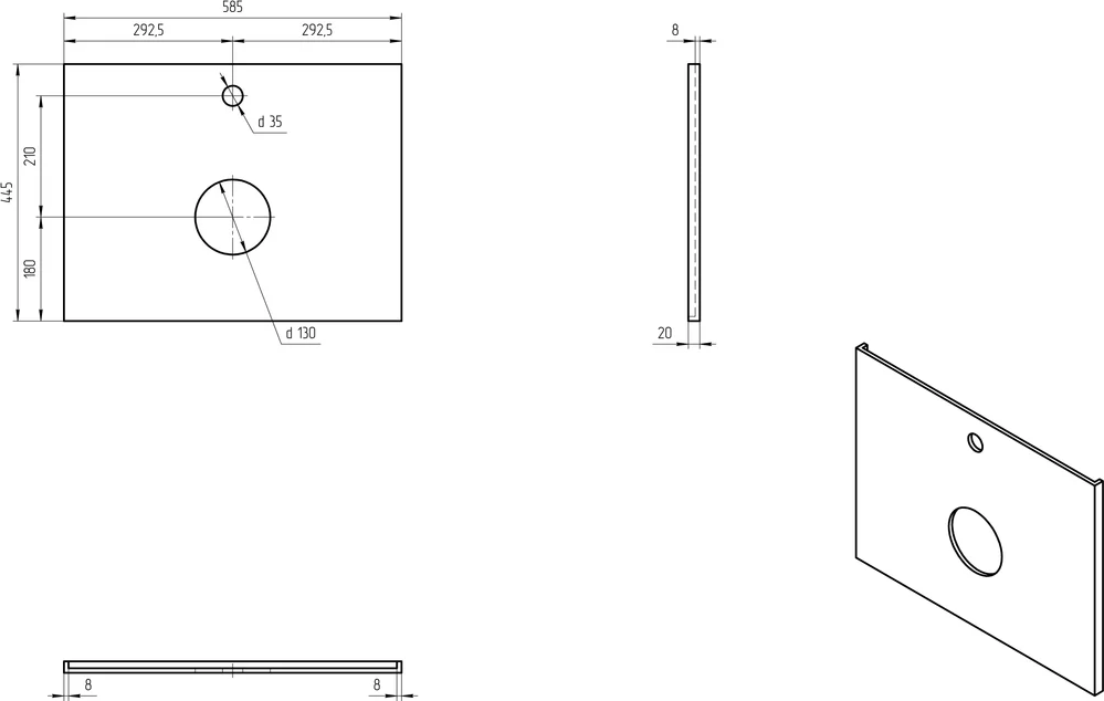 - Размеры (ШхВхГ): 585х20х445 мм.