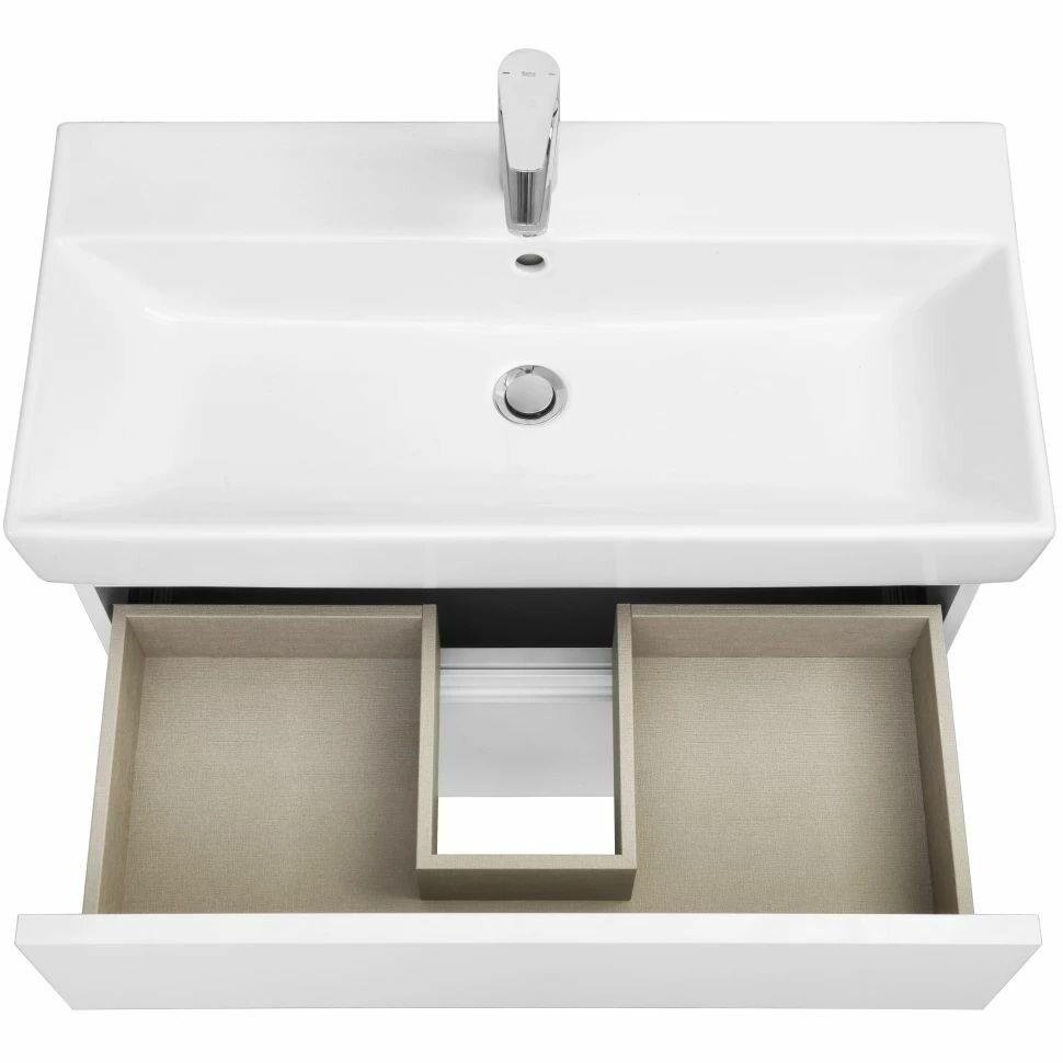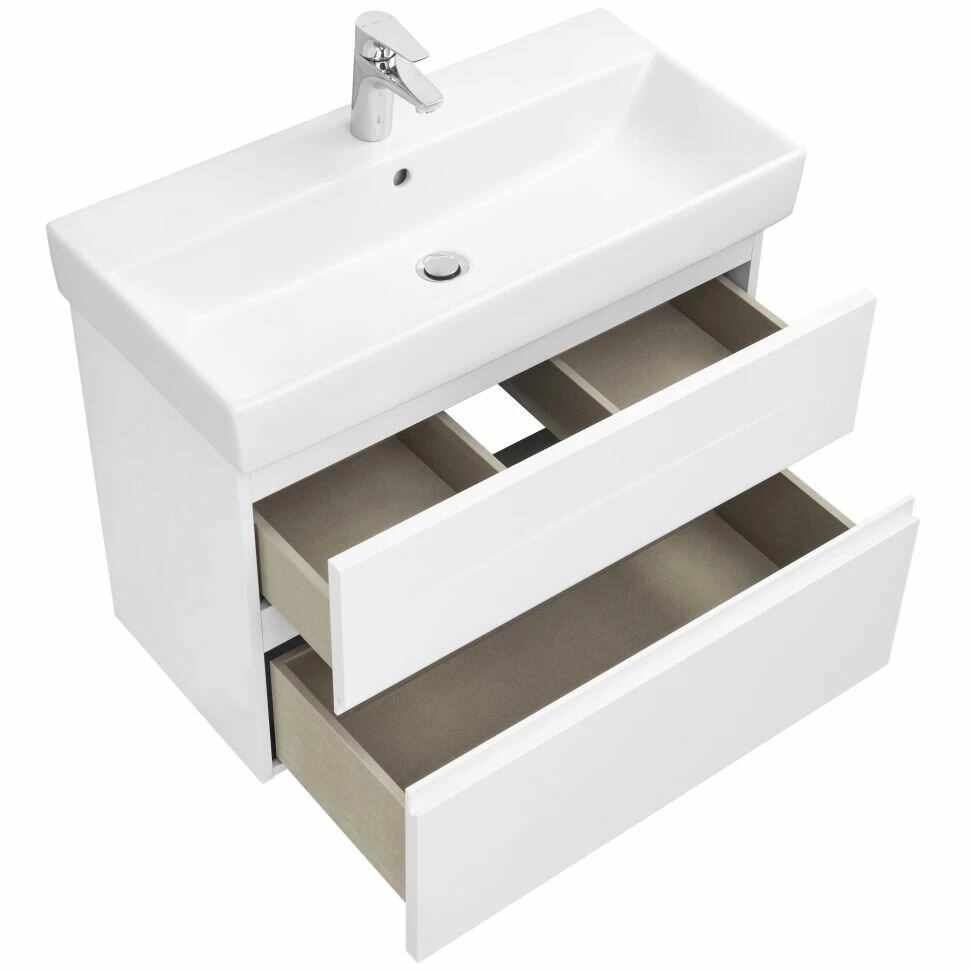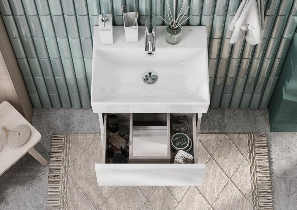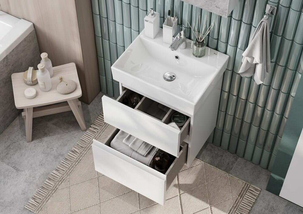 Модуль с раковиной глубиной 390 мм позволяет использовать мебель Oleta даже в небольших ванных комнатах. Несмотря на компактную глубину, тумба комплектуется раковиной Oleta с достаточно вместительной чашей. Лаконичный и современный дизайн раковины притягивает к себе взгляд. 2 выдвижных ящика тумбы установлены на направляющие Hettich, которые гарантируют продолжительную безупречную функциональность и максимальный комфорт эксплуатации. Скрытый монтаж не портит элегантный дизайн мебели, а возможность полного выдвижения обеспечит быстрый доступ к необходимым предметам. Внутренняя отделка ящиков выполнена в цвете бежевый текстиль, приятна на ощупь и предотвращает скольжение предметов. Профильная ручка во всю ширину фасада удобна в использовании и позволяет сочетать мебель Oleta c различными цветами смесителей и аксессуаров для ванной комнаты. Ручка выполнена в виде J-профиля.