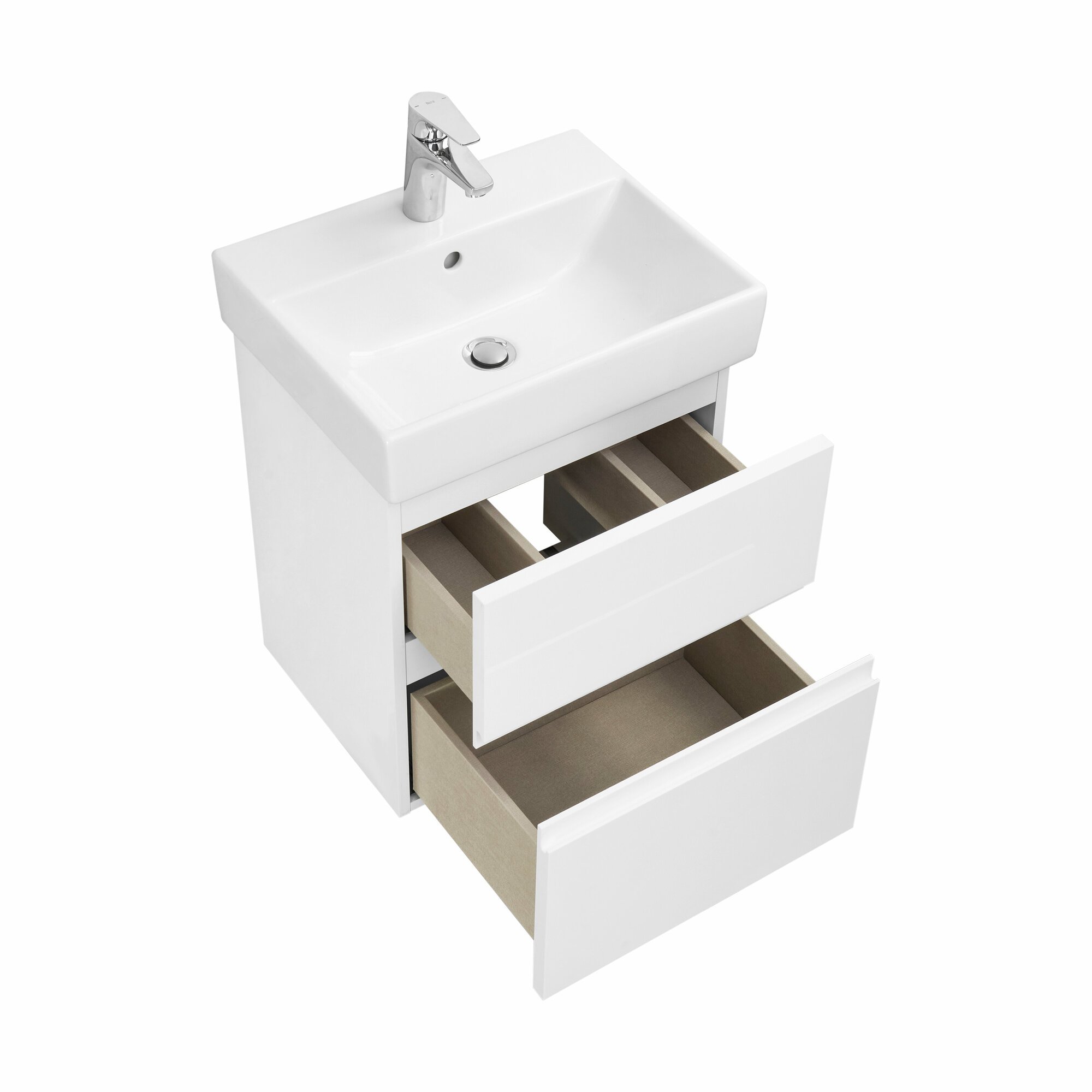 Модуль с раковиной глубиной 390 мм позволяет использовать мебель Oleta даже в небольших ванных комнатах. Несмотря на компактную глубину, тумба комплектуется раковиной Oleta с достаточно вместительной чашей. Лаконичный и современный дизайн раковины притягивает к себе взгляд. 2 выдвижных ящика тумбы установлены на направляющие Hettich, которые гарантируют продолжительную безупречную функциональность и максимальный комфорт эксплуатации. Скрытый монтаж не портит элегантный дизайн мебели, а возможность полного выдвижения обеспечит быстрый доступ к необходимым предметам. Внутренняя отделка ящиков выполнена в цвете бежевый текстиль, приятна на ощупь и предотвращает скольжение предметов. Профильная ручка во всю ширину фасада удобна в использовании и позволяет сочетать мебель Oleta c различными цветами смесителей и аксессуаров для ванной комнаты. Ручка выполнена в виде J-профиля.