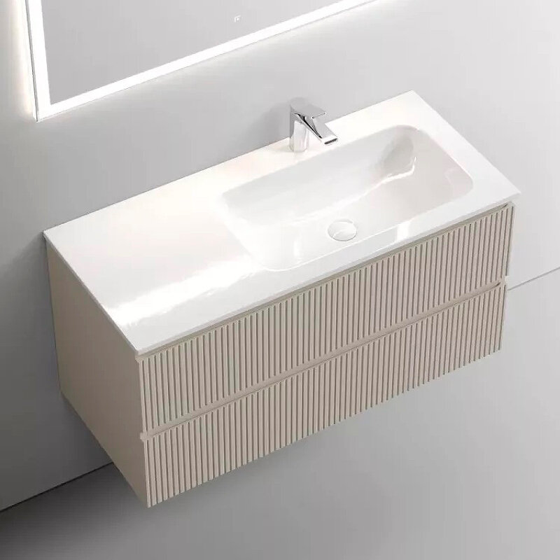 Тумба под раковину Sancos Snob T 100 SNT100RCE beige soft c двумя выдвижными ящиками, оснащенными доводчиками. Цвет: Beige soft. Выполнена в современном стиле. Монтаж настенный. Раковина в комплекте не идет. Покрытие корпуса: пленка. Поверхность корпуса матовая. Поверхность фасада матовая. Бельевой корзины в комплекте нет. Страна производства: Италия.